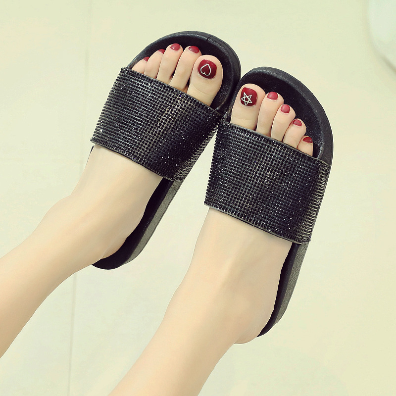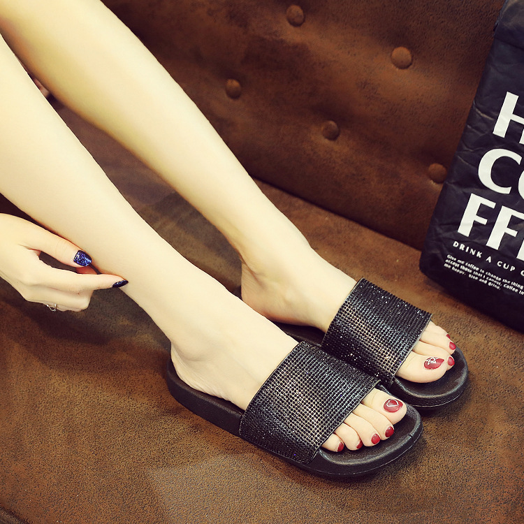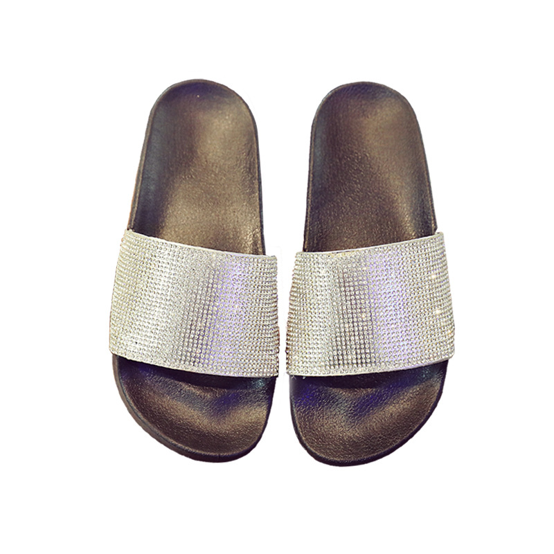 Новые летние женские шлепанцы 2024 года, плоские сандалии с пайетками, шлепанцы с блестящими стразами, незаменимые для пляжа.