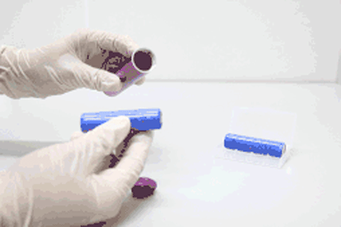 样品研磨完毕,可以利用套装中配套的退杵盒,插入卸杵孔,手握研磨器轻轻向下压,研磨杵自动脱落,集中收集在退杵盒中,不会污染环境及其它样本(图4)。