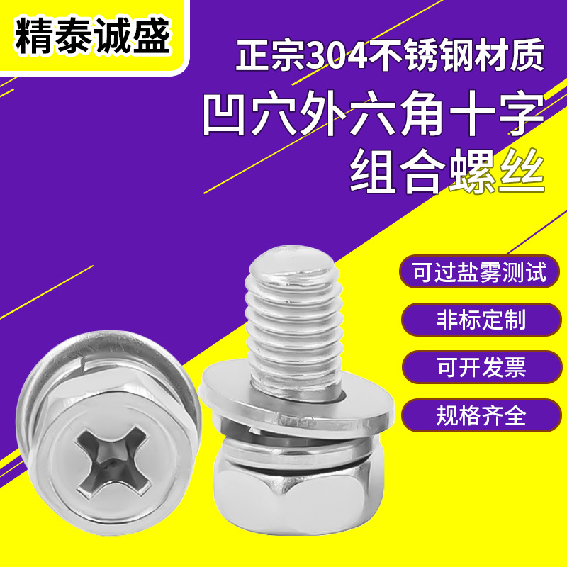 В наличии gb9074.13 304 нержавеющая сталь внешний шестигранный крестовой выемка крепежный винт плоская пружинная накладка три комбинированных винта