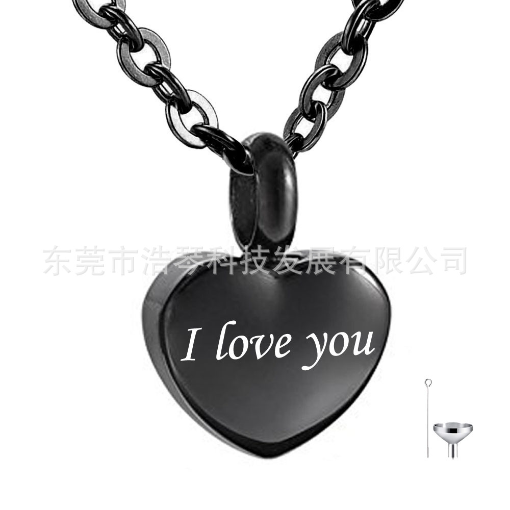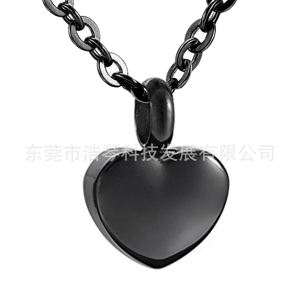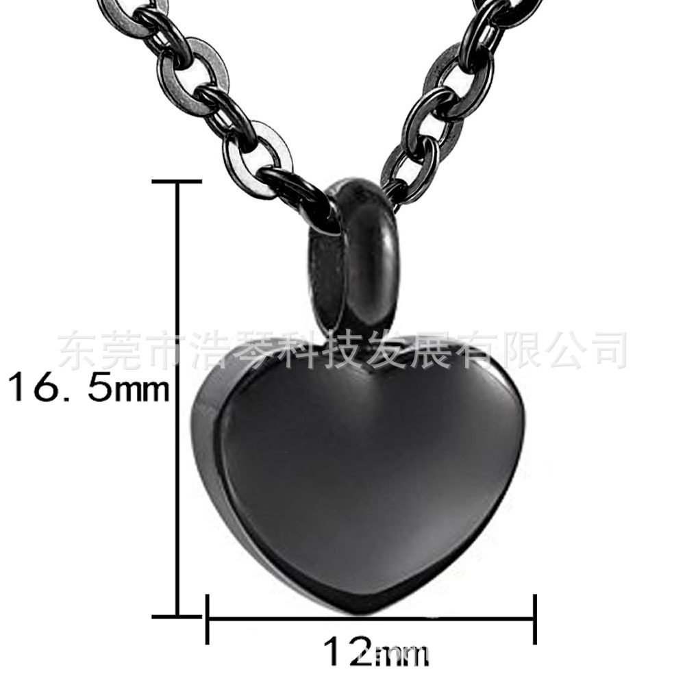 Amazon горячая Распродажа пепел для домашних животных ожерелье из титановой стали черный пепел в форме сердца кулон похоронные украшения флакон духов