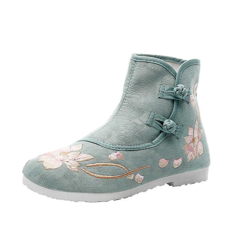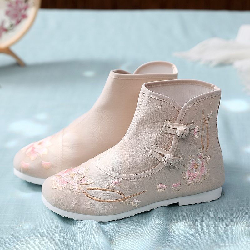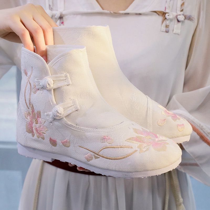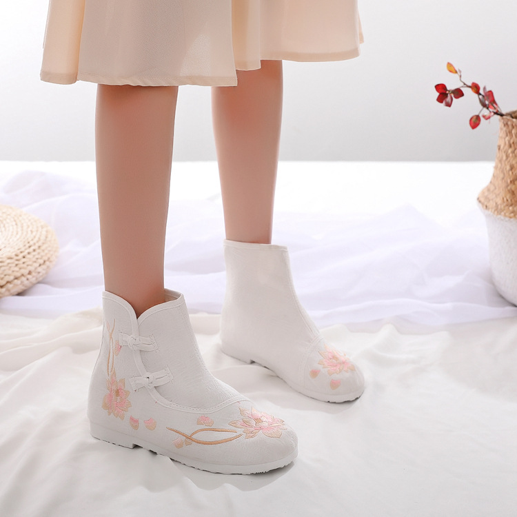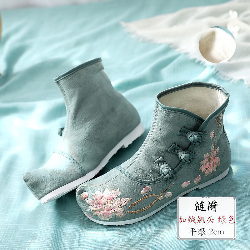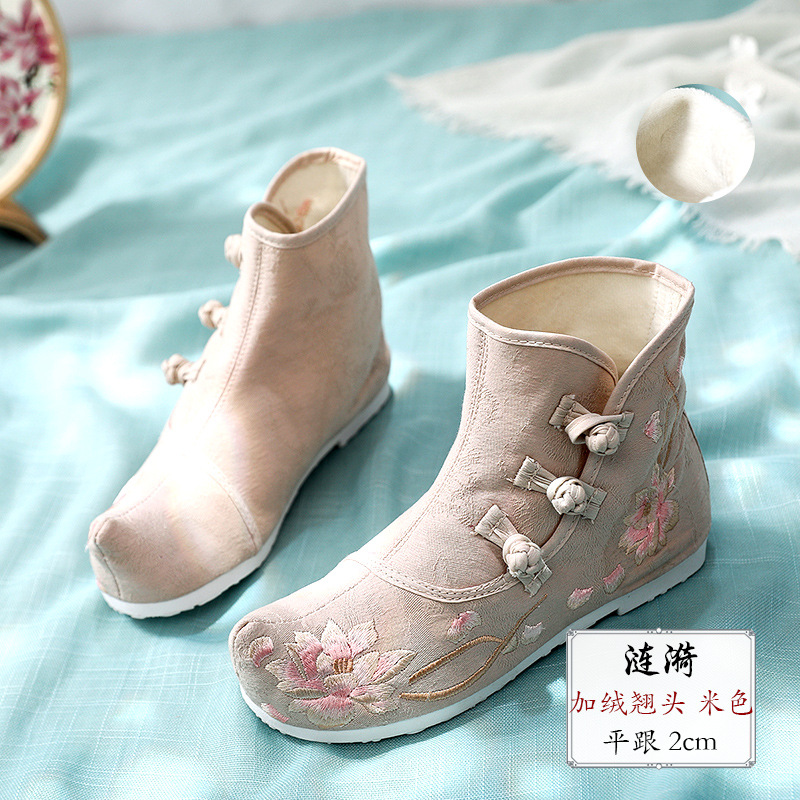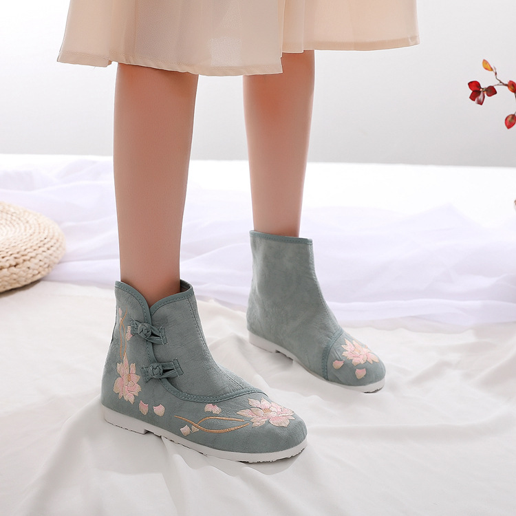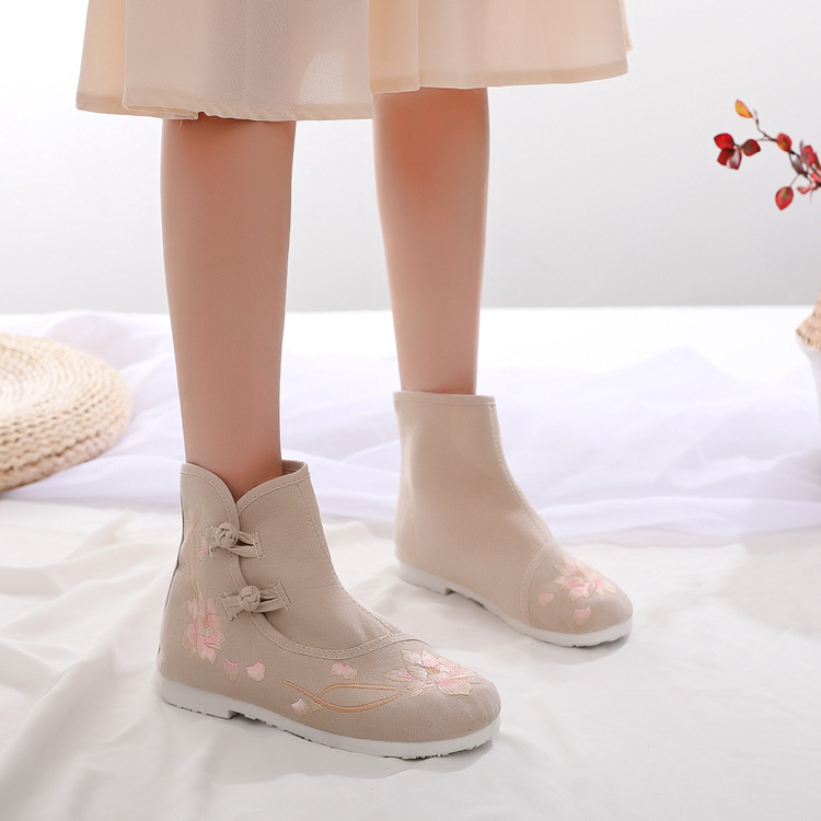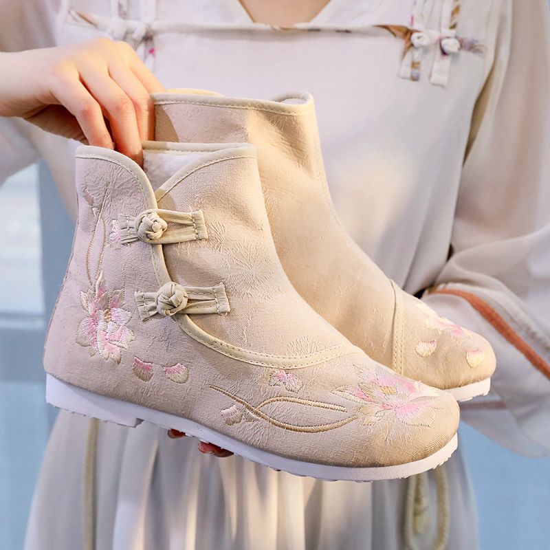 Тканевая обувь Ripple Jinchen с цветочной вышивкой, женские ботинки в китайском стиле, новое осеннее поступление, обувь ханьфу, старинные ботильоны на плоской подошве, женская обувь