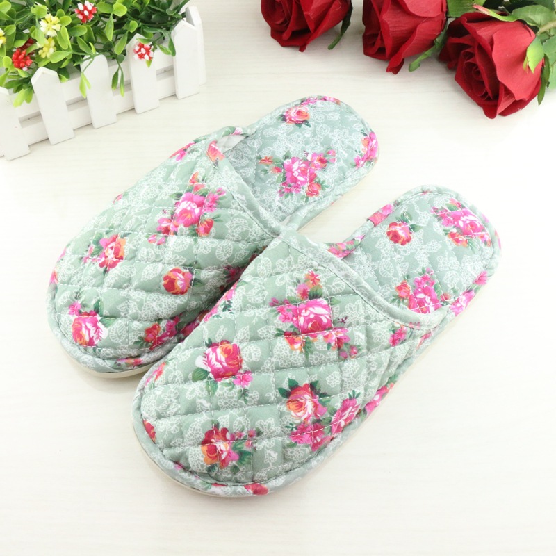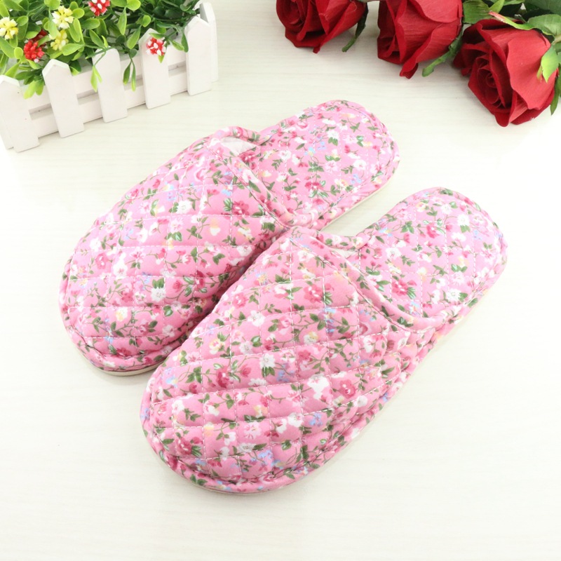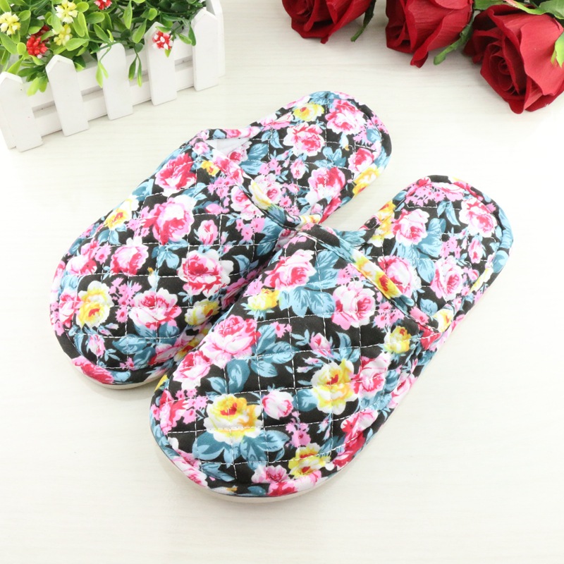 Зимние хлопковые тапочки с цветочной упаковочной тканью для домашних пар, мужские и женские теплые тапочки, выставочные товары для прилавка