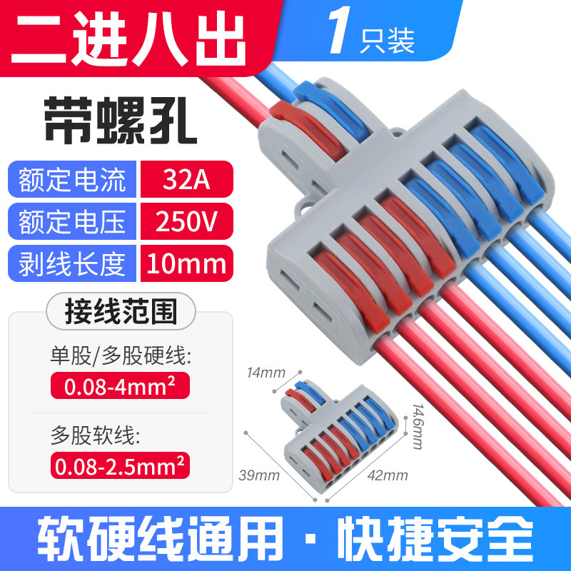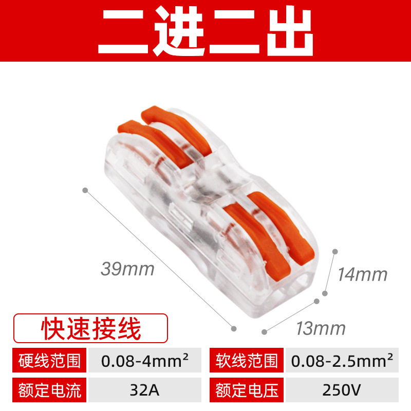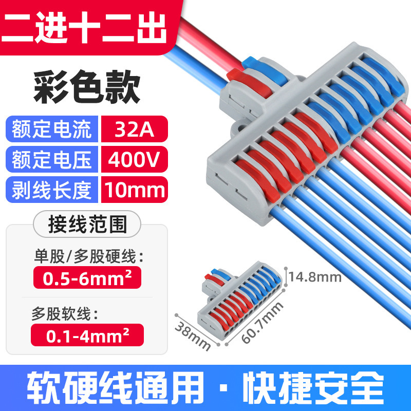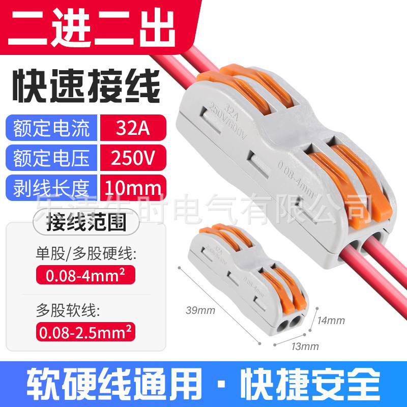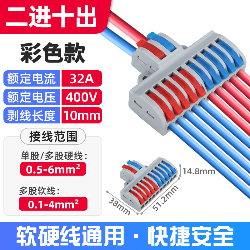Быстроразъемный соединитель SPL-2, многофункциональный, цветной, для двух входов и двух выходов, огнестойкий.