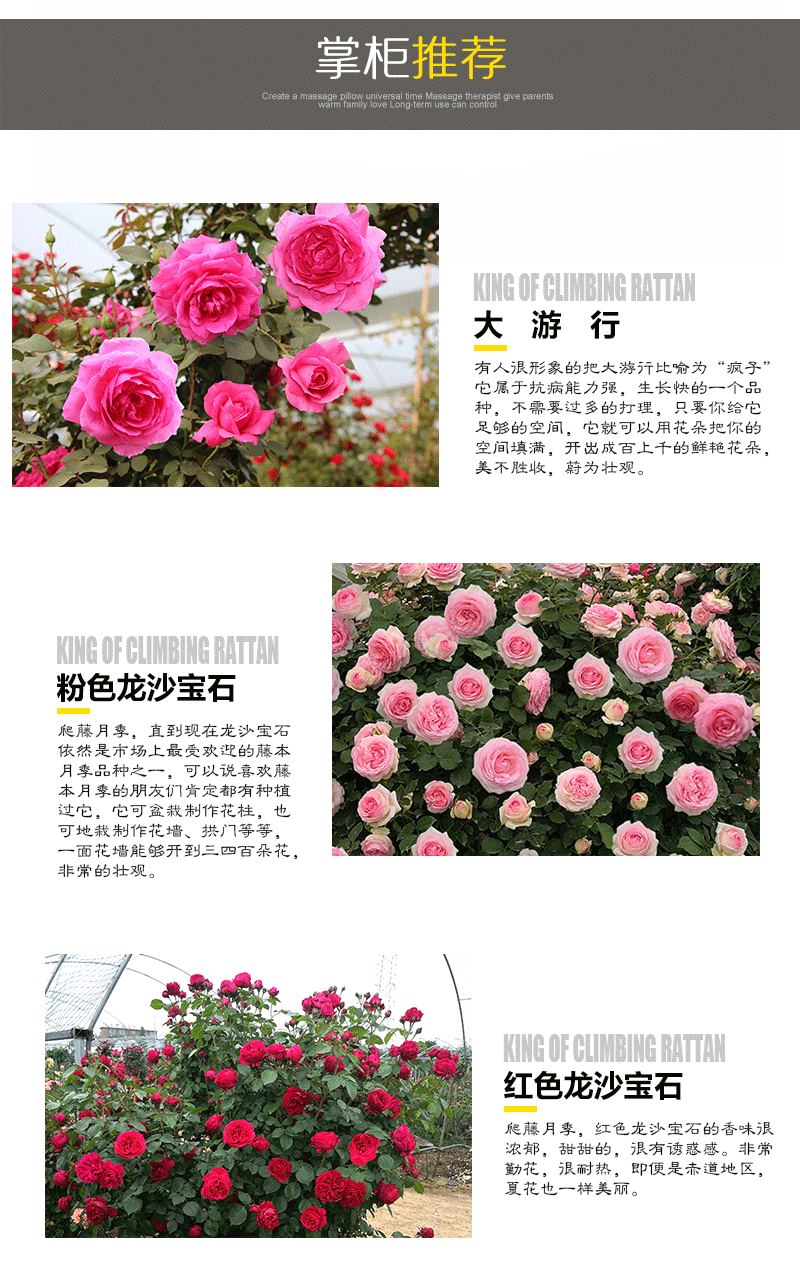 Девушка из ротанга [полна цветов в те дни]; Ротанг Радуга [Полный цветов в этом году]; Сладкий сон [Полный цветов]; Большой парад [Полный цветов]; Пудровый Дракон [Полный цветов]; Красный Дракон [полный цветов]; Принцесса [Полный цветов]; Fonda [полный цветов в этом году]; Медовая карамель [полная цветов]; Лавандовая гирлянда [Полный цветов]; Золотой праздник [Полный цветов]; Белый Деревянный Ладан [полный цветов в этом году]; Королева Швеции]; Голубой дождь [полный цветов в году]; Леди Шарлотта]; Лу Shuohong [Полные цветы в этом году]; Мое сердце было полно цветов]; Yilei [полный цветов в те годы]; Голубой шторм [Полный цветов]; Hongda [полный цветов в том году]; Анжела [Полный цветов в году]; Сбор плюс покупка и доставка специальных удобрений