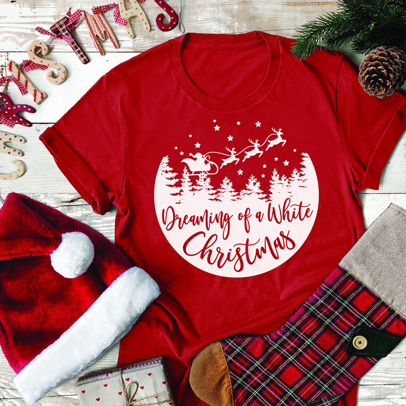 Внешняя торговля футболка маленький Летающий олень Рождество мужчин и женщин буквы европейской и американской улицы с коротким рукавом