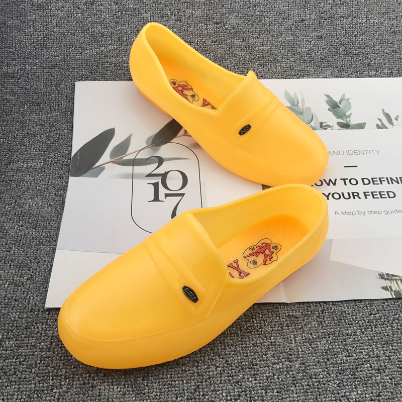 Мужская резиновая обувь, непромокаемая мужская обувь, мужская обувь шеф-повара, пластиковая желтая Рабочая кухонная обувь, строительная площадка, нескользящая плоская подошва