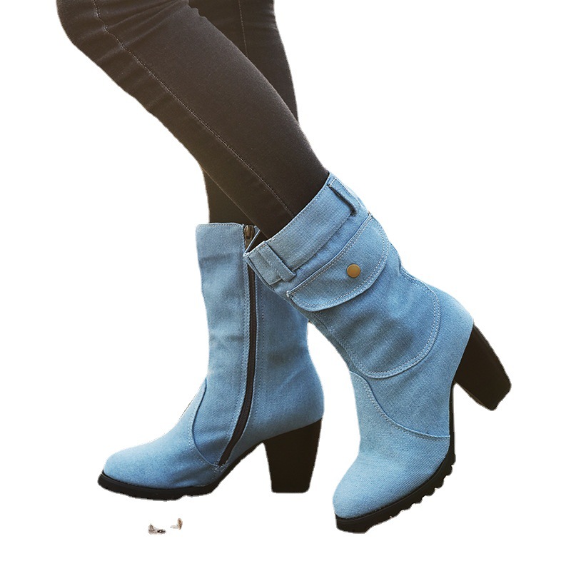 В наличии поколение гигантских TWIPS Amazon независимая станция желает европейской и американской внешней торговли больших размеров джинсовые женские сапоги средней длины на высоком каблуке