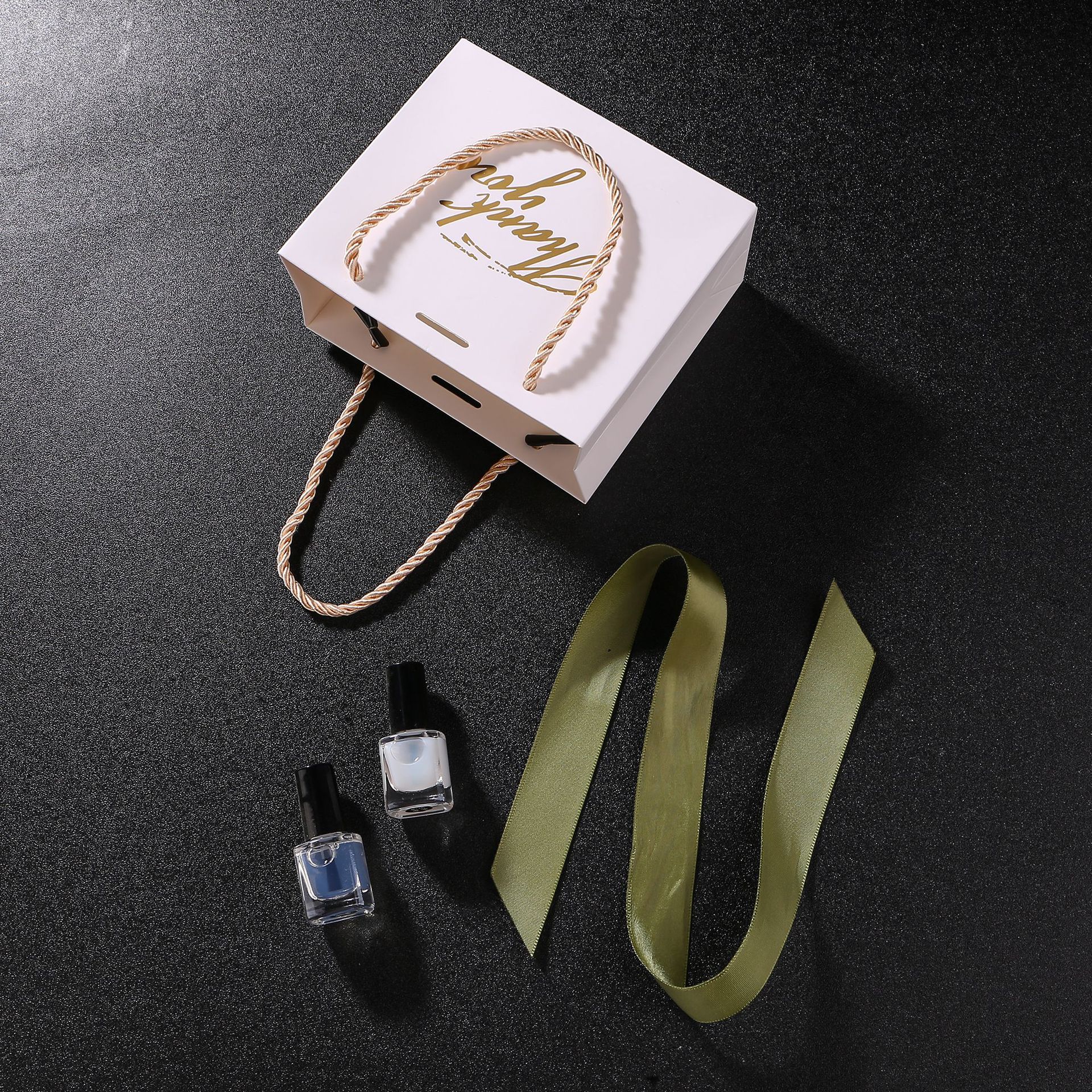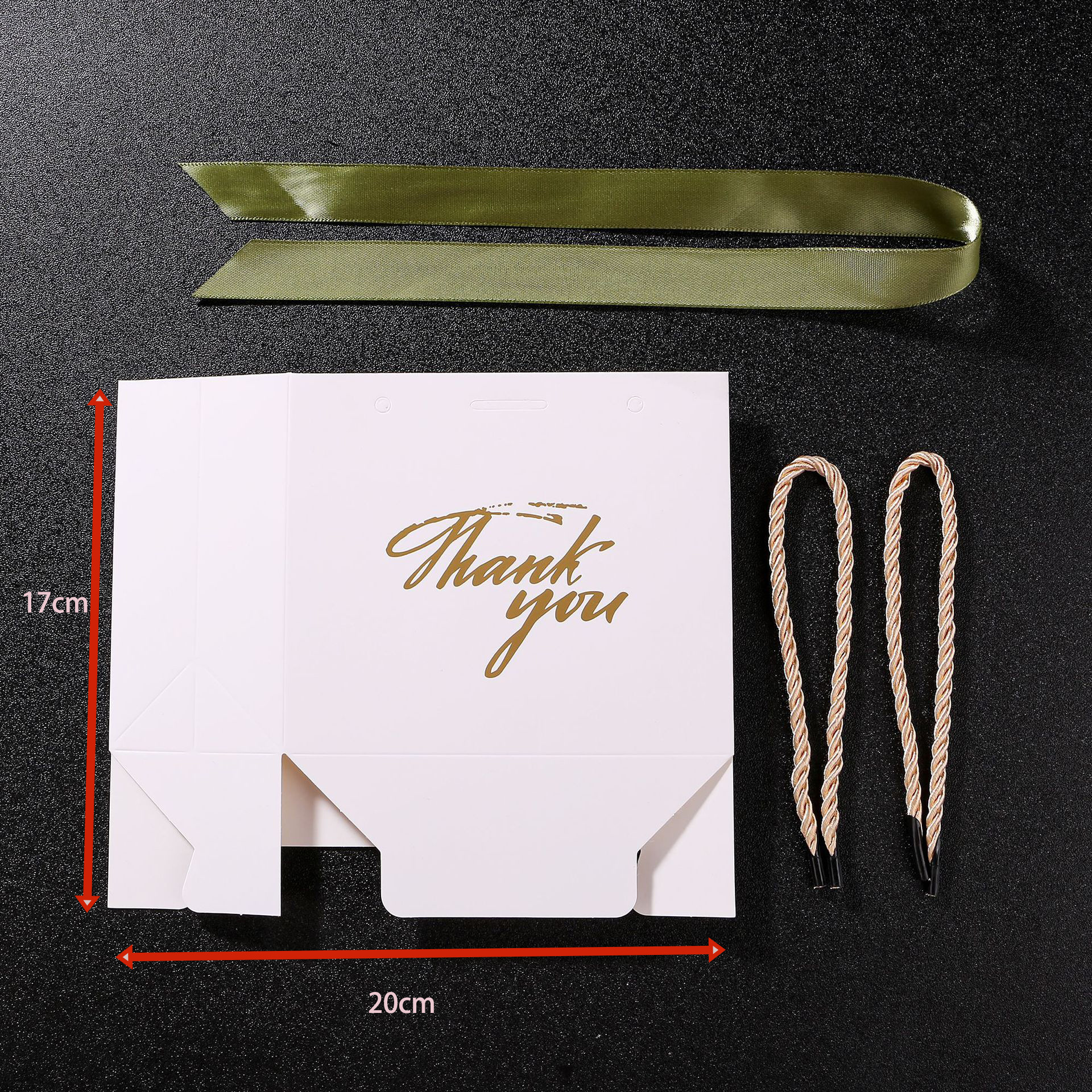 每个袋子都配有两根手提绳,袋子是平铺发货的,需要自行把手提绳穿到袋子上面