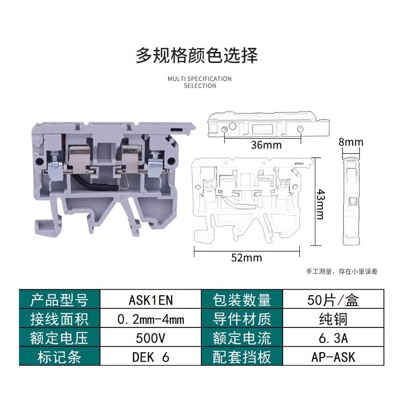 Factory SAK/JXB-2.5RD ASK-1EN серая Клеммная колодка проводки предохранителя