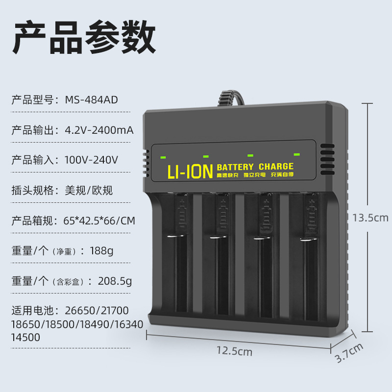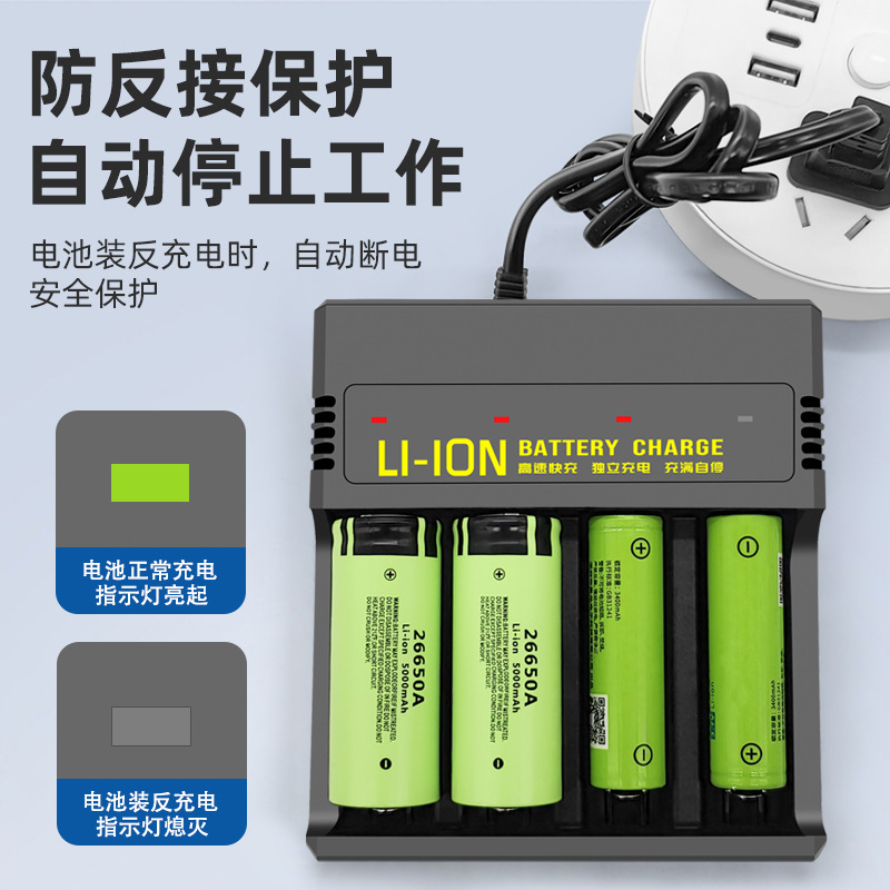 Зарядное устройство 18650 Зарядное устройство 26650 литиевая батарея с четырьмя слотами мощный фонарик Интеллектуальный независимый четырехслотовый анти-обратная зарядка