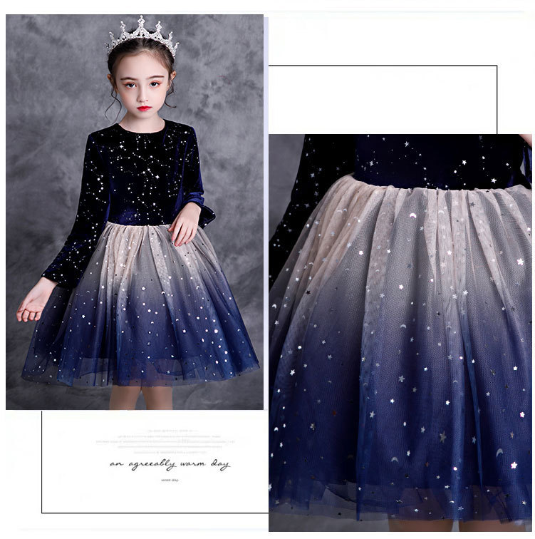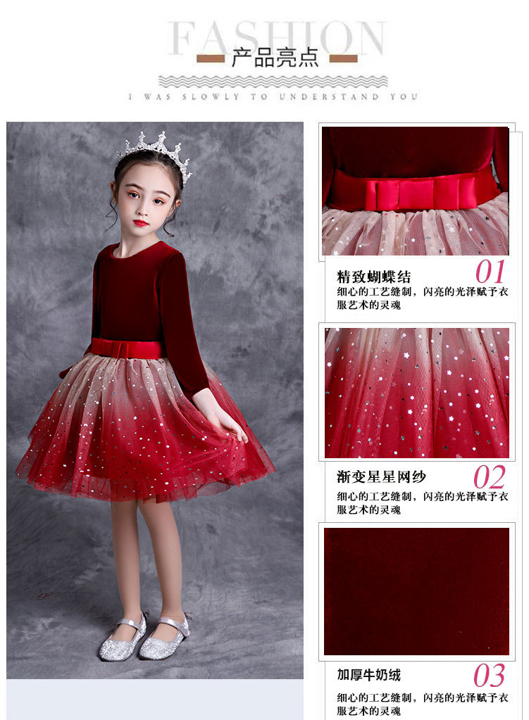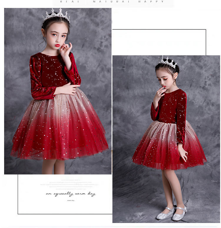 Детский новогодний костюм для праздничных выступлений Платье для мальчиков и девочек Костюм для хора Платье с помпоном градиентной принцессы Костюм для декламационного выступления