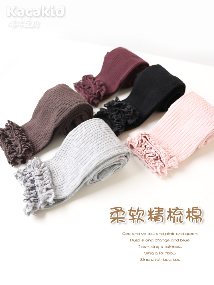 Леггинсы Kacakid для девочек, оптом, детские носки, девичьи принцессные брюки с девятью точками, оборками и кружевом.