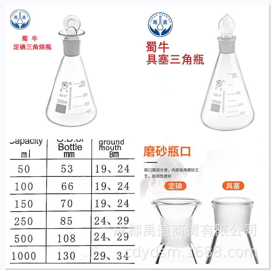 Треугольная колба с пробкой Shuniu, мерная колба йода, коническая бутылка для гидролата 50 100 250 500 1000 мл