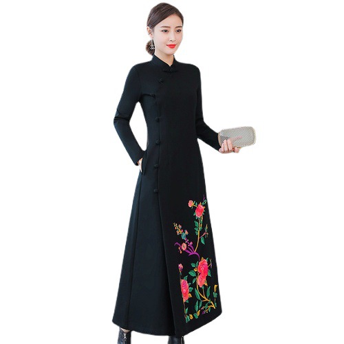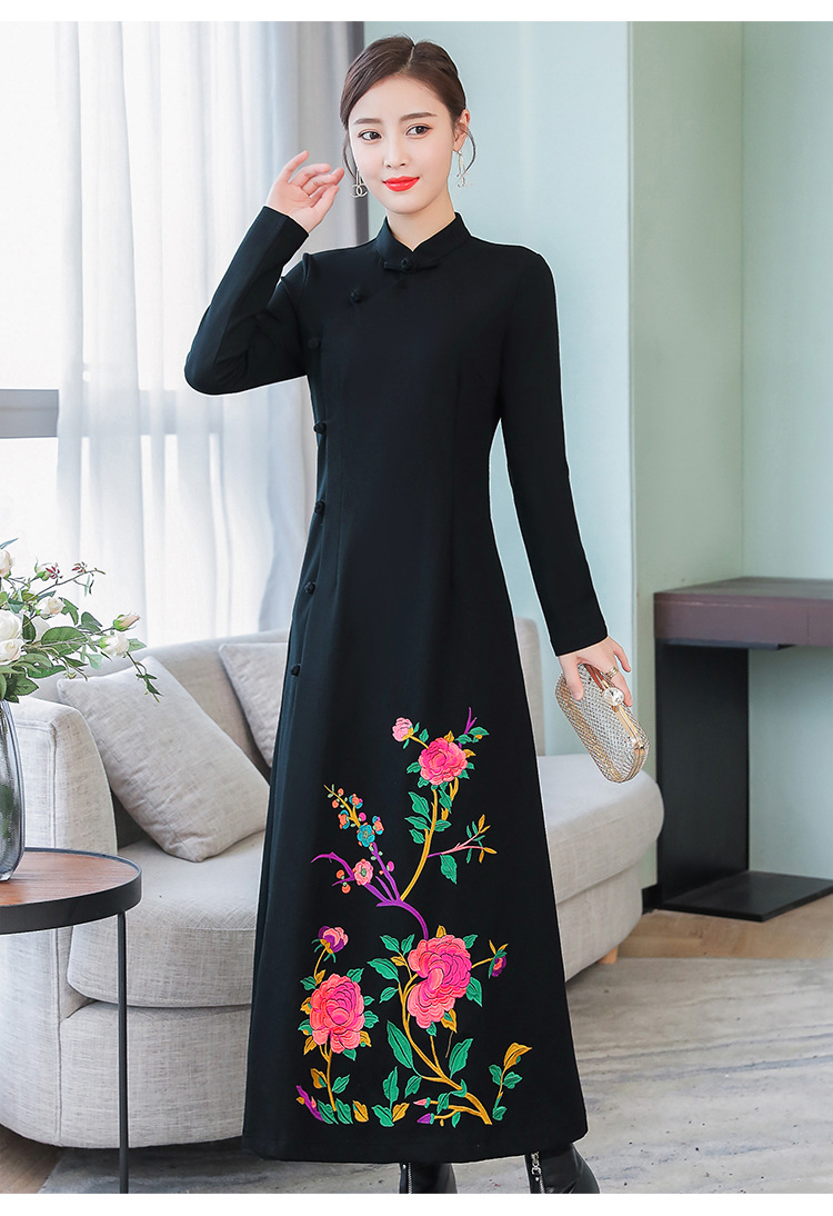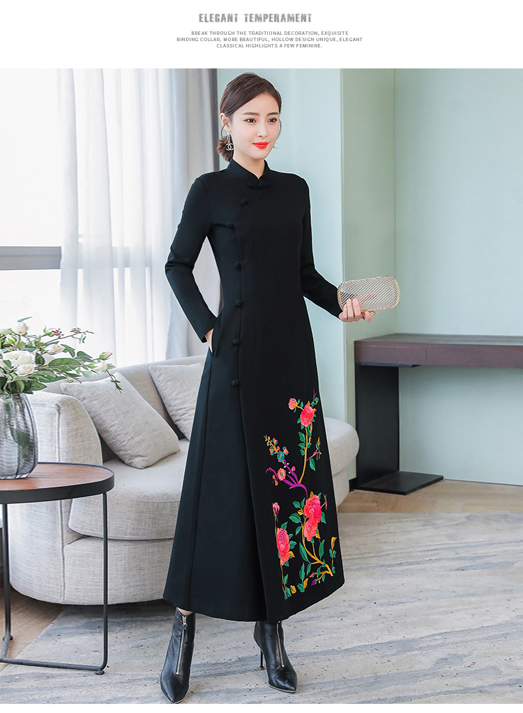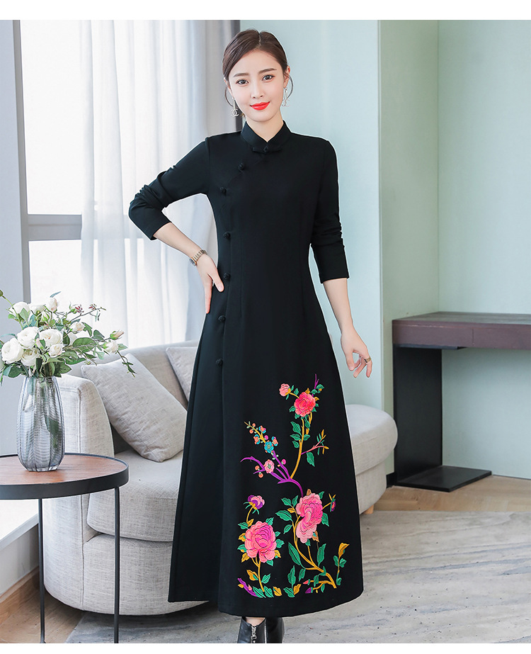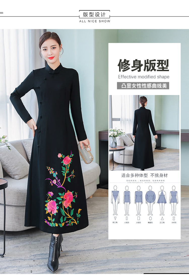 2010 настоящий выстрел 2019 осень оригинальный этнический стиль вышитое Ретро улучшенное платье Ципао тонкое платье для похудения
