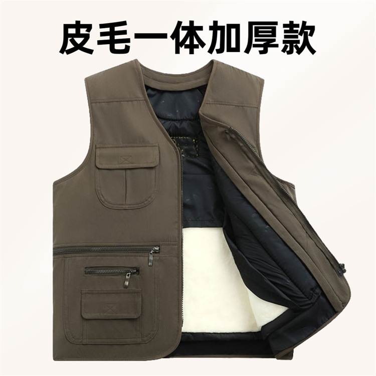 Оптовая Продажа с фабрики осенне-зимний теплый жилет из овчины, мужской шерстяной жилет, меховой интегрированный жилет среднего и пожилого возраста