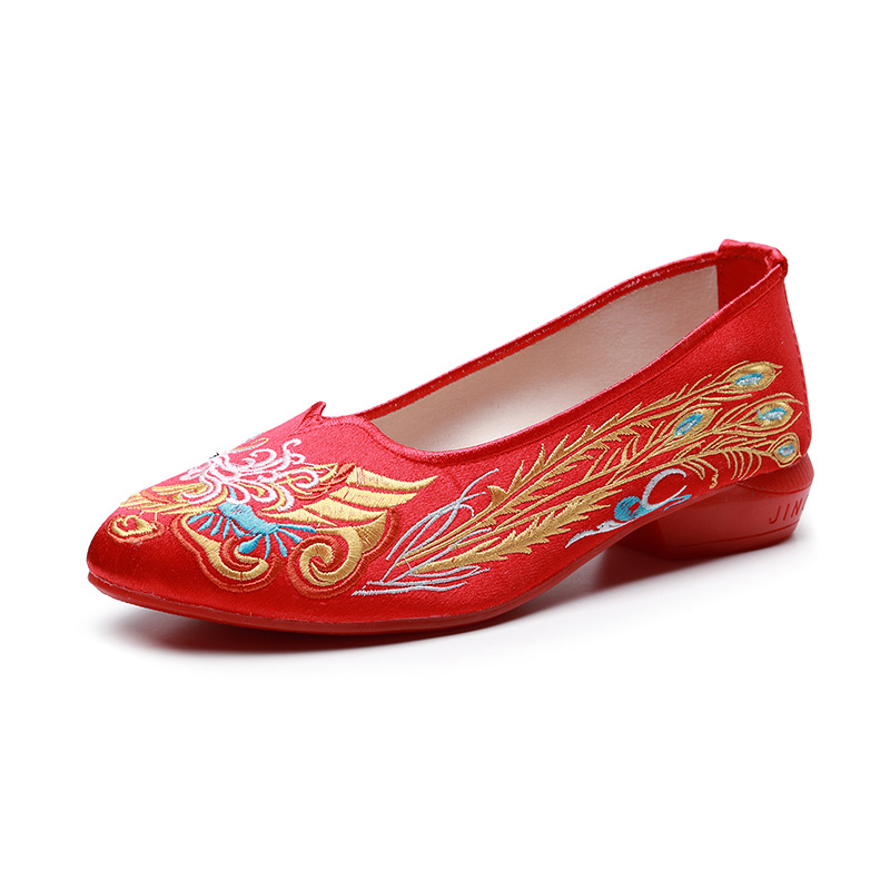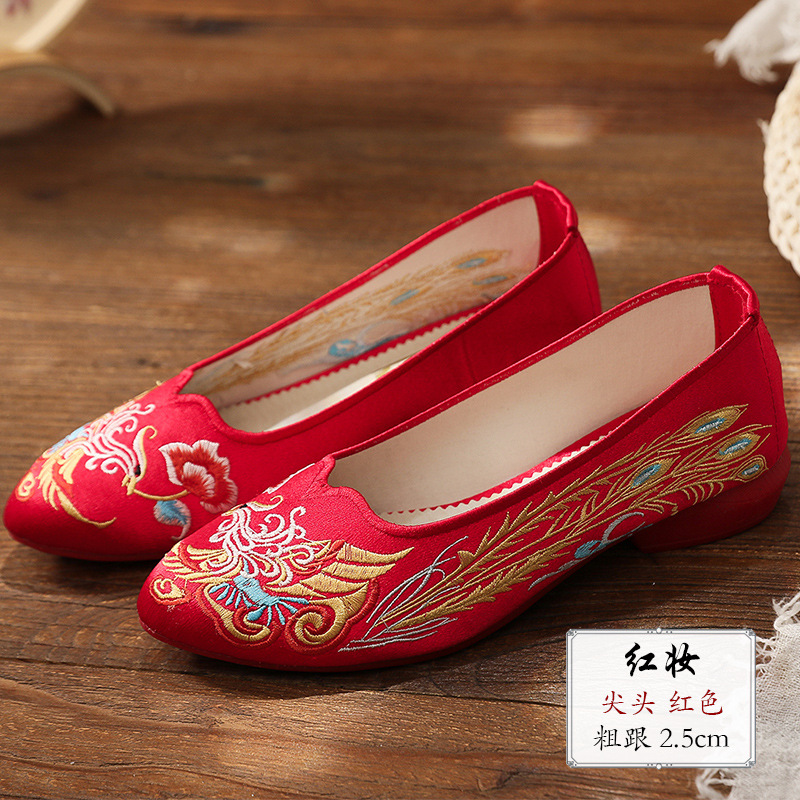 Новые туфли с вышивкой Red Xiuhe, Женская обувь в стиле ретро, старинная Пекинская ткань, свадебная обувь в этническом стиле, Женская одиночная обувь, свадебная обувь