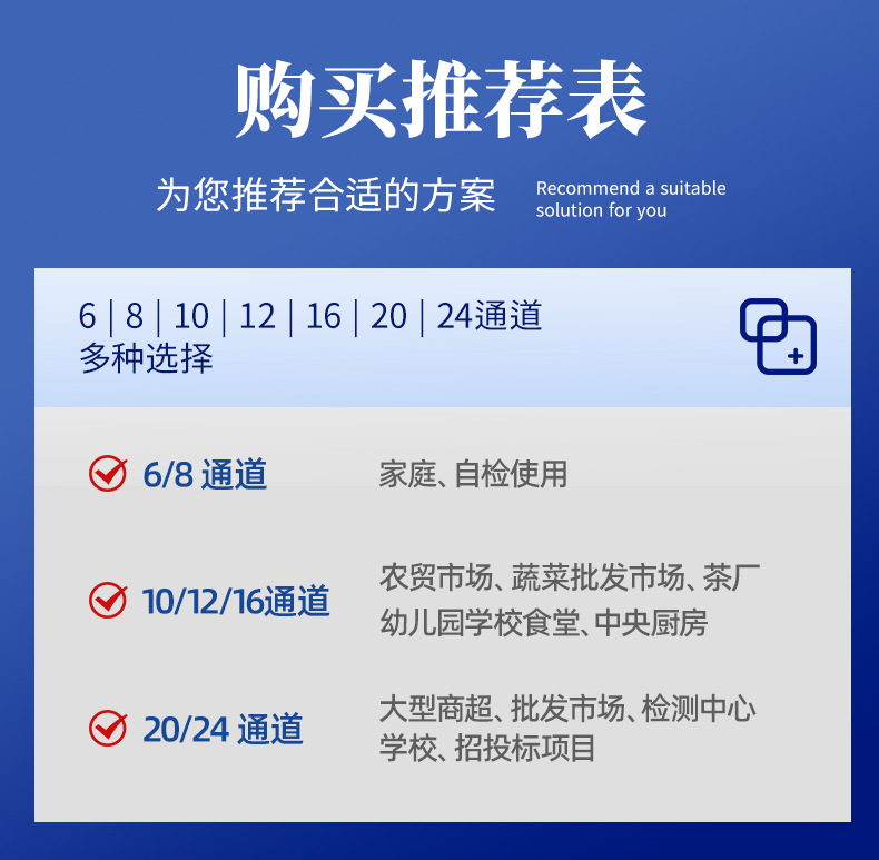 Умный 6-канальный счетчик остатков + полный набор аксессуаров поставляется с 300 реагентами.; Умный 8-канальный счетчик остатков + полный набор аксессуаров поставляется с 300 реагентами.; Умный 10-канальный сельскохозяйственный остаточный счетчик + полный набор аксессуаров включает 300 реагентов.; Умный 12-канальный сельскохозяйственный остаточный счетчик + полный набор аксессуаров включает 300 реагентов.; Умный 16-канальный сельскохозяйственный остаточный счетчик + полный набор аксессуаров включает 300 реагентов.; Умный 20-канальный сельскохозяйственный остаточный счетчик + полный набор аксессуаров включает 300 реагентов.; Умный 24-канальный счетчик остатков + полный набор аксессуаров поставляется с 300 реагентами.; Портативный 6-канальный Android + раздвижной сенсорный экран + сеть + аксессуары поставляются с 300 реагентами; Портативный 12-канальный + раздвижной сенсорный экран + сеть + аксессуары поставляются с 300 реагентами.; Портативные каналы Android 18 + раздвижной сенсорный экран + сеть + аксессуары поставляются с 300 реагентами.; Портативные каналы Android 24 + раздвижной сенсорный экран + сеть + аксессуары поставляются с 300 реагентами; Обязательства соответствовать стандартному сертификату и универсальной машине; Комплексный детектор мяса фруктов и овощей; Полный набор 6-канальных детекторов безопасности пищевых продуктов поставляется с полным набором аксессуаров.; Полный спектр 12-канальных детекторов безопасности пищевых продуктов поставляется с полным набором аксессуаров.; Полный спектр 18-канальных детекторов безопасности пищевых продуктов поставляется с полным набором аксессуаров.; Полный спектр 24-канальных детекторов безопасности пищевых продуктов поставляется с полным набором аксессуаров.; Оснащен настольной коробкой из алюминиевого сплава.
