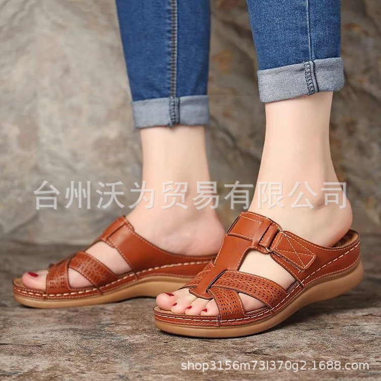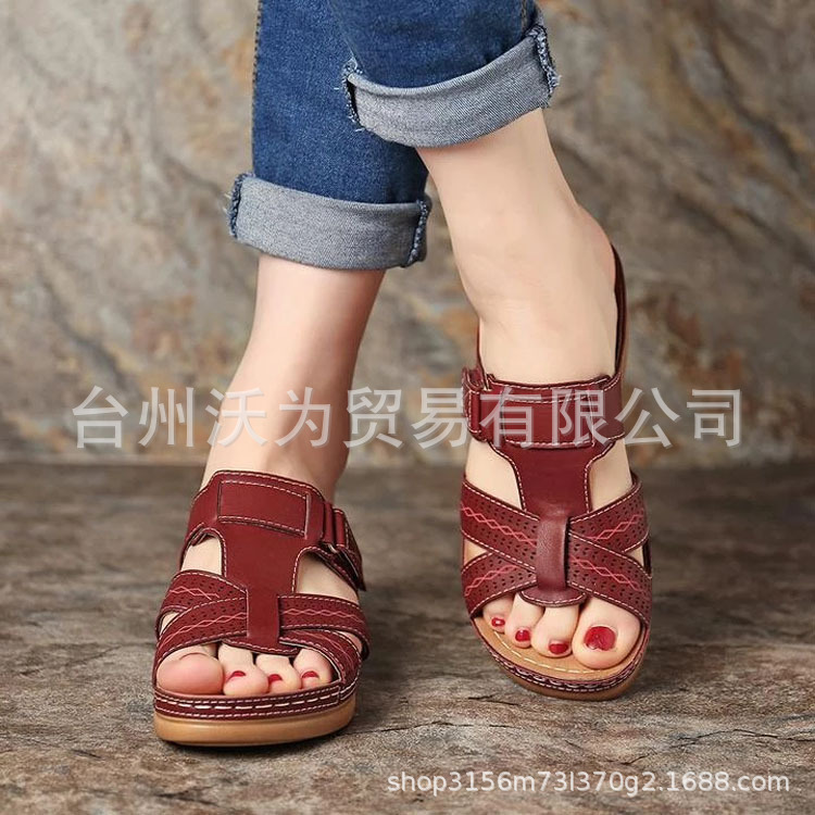 Трансграничные прямые поставки, женские сандалии больших размеров, повседневные сандалии с рыбьим ртом, европейские и американские однотонные сандалии с толстой подошвой и полым ремешком, в наличии