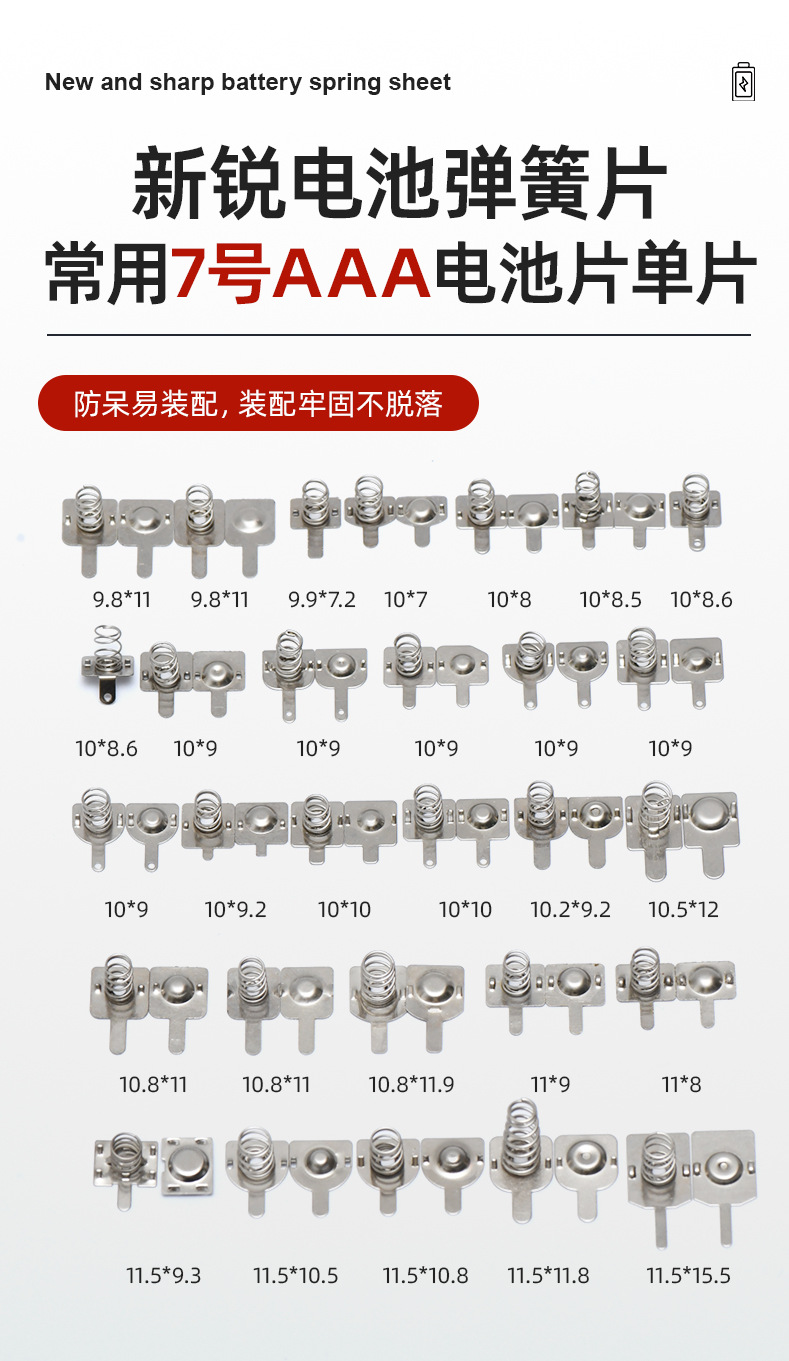Производитель пружин для батареек из Дунгуаня напрямую поставляет пружинные листы для батареек типа AAA (№7) с пружинным зажимом, используемые для игрушек и пультов дистанционного управления.