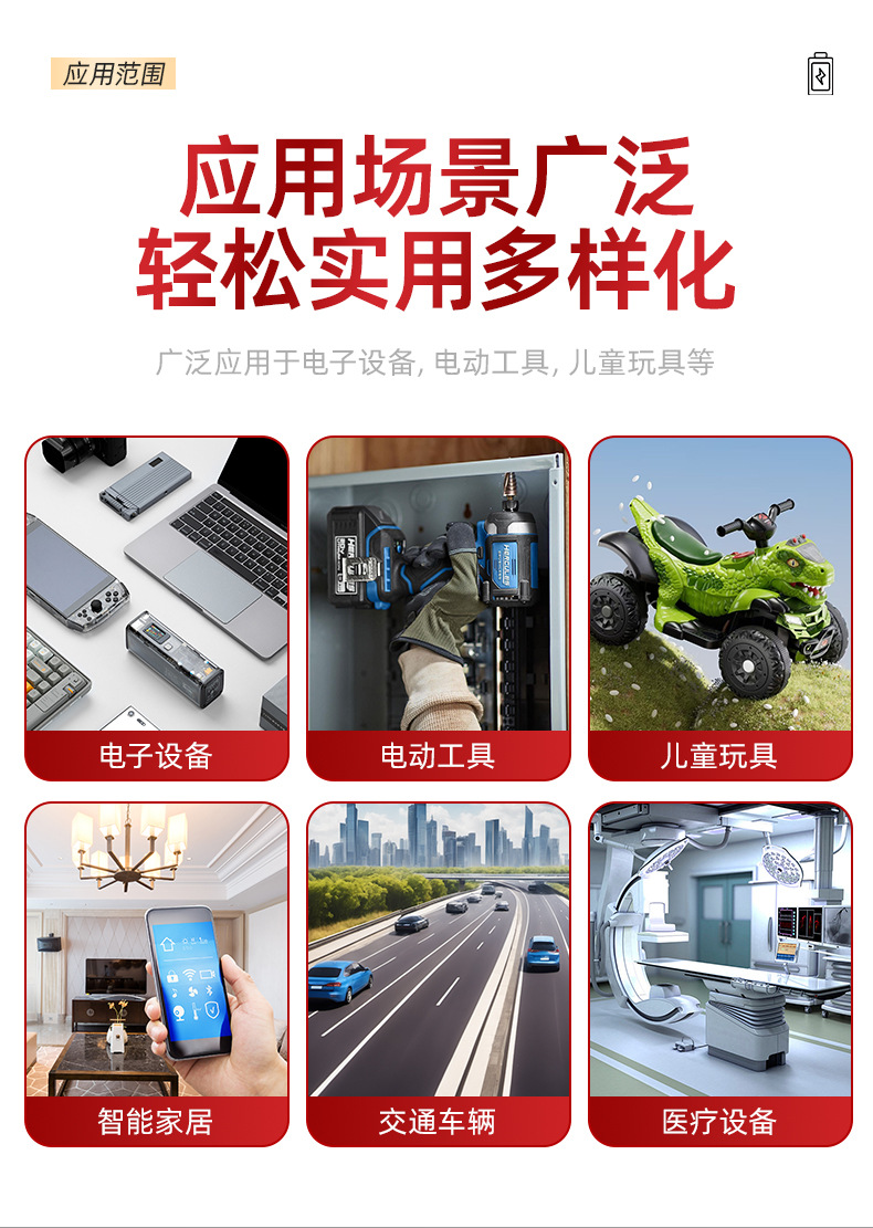Электронная зубная щетка, рация, беспроводной телефон, умный дверной замок, POS-терминал, диктофон, светодиодный налобный фонарь, аварийный светильник, кемпинговый фонарь, электронная свеча, браслет с подсветкой, велосипедный фонарь, батарейный блок для освещения