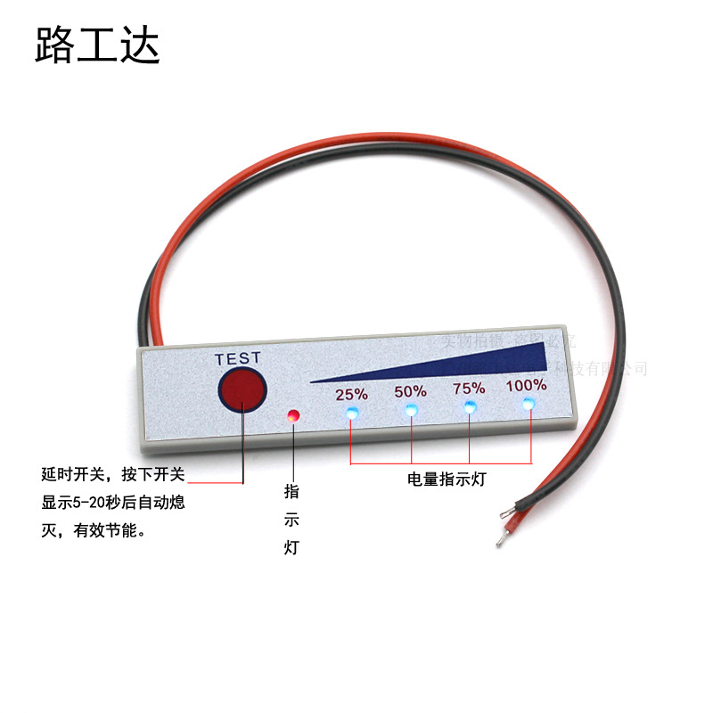 温声提示:3.7V锂电用的是1个红色电源指示灯,4个绿色电量指示灯(其它电压范围的是1个红色电源指示灯,4个蓝色电量指示灯)