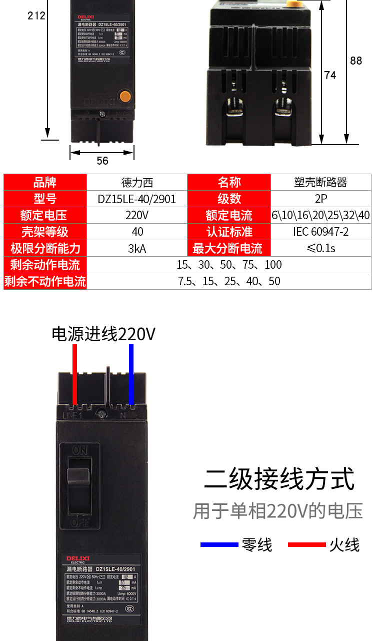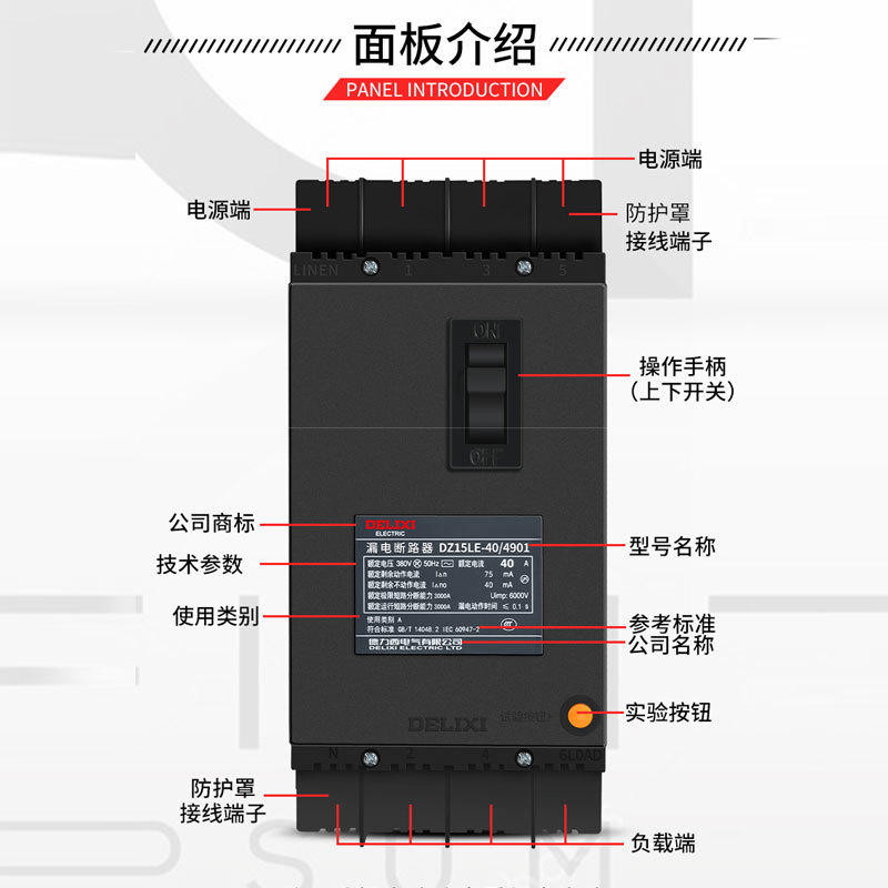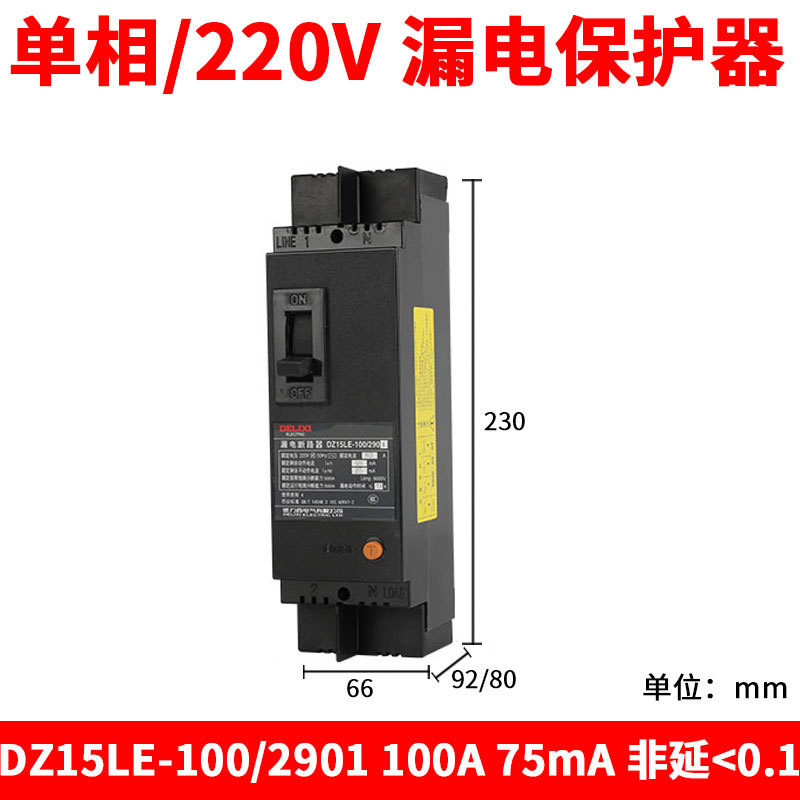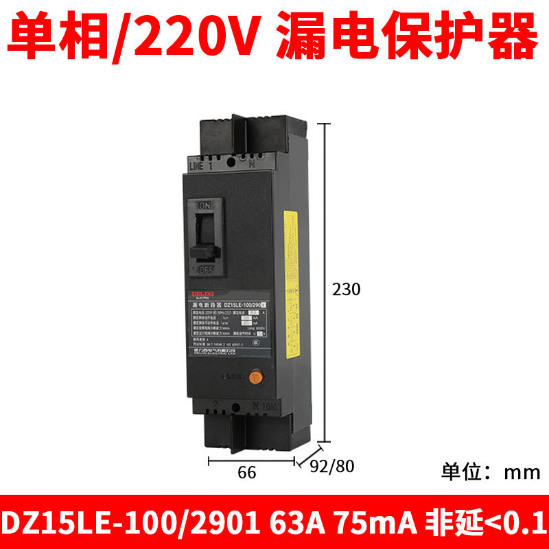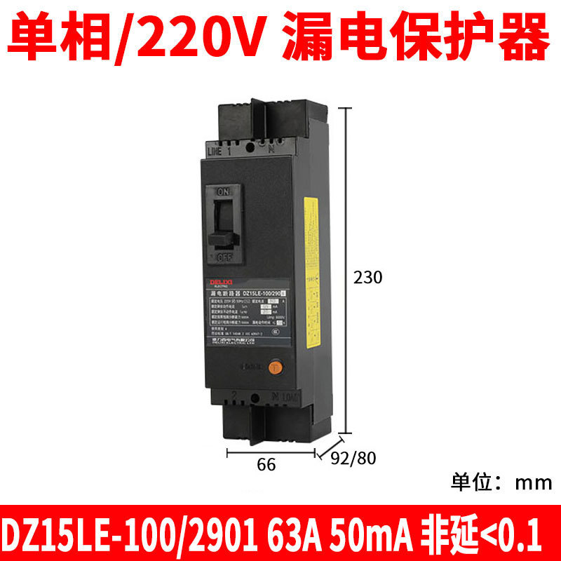 DZ15LE-100 выключателя утечки Delixi/2901 63A100A 75mA 50MA 30MA 2P