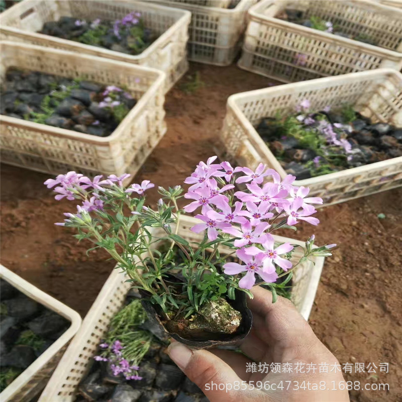 Цветочное море, вишневый цвет, кустики Phlox subulata, многолетние цветы, база посадки Lingsen, осуществляется зеленение строительной площадки парка.