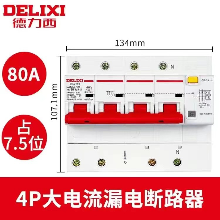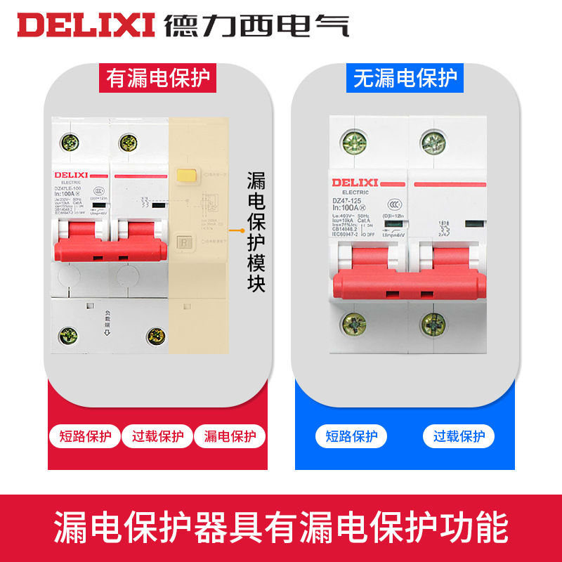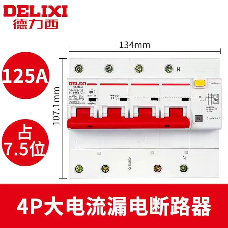 Автоматический выключатель защиты от утечки Delixi 2P трехфазный 4P четырехпроводной 1P3P + N воздушный выключатель с защитой от утечки 100A125A