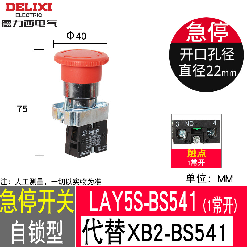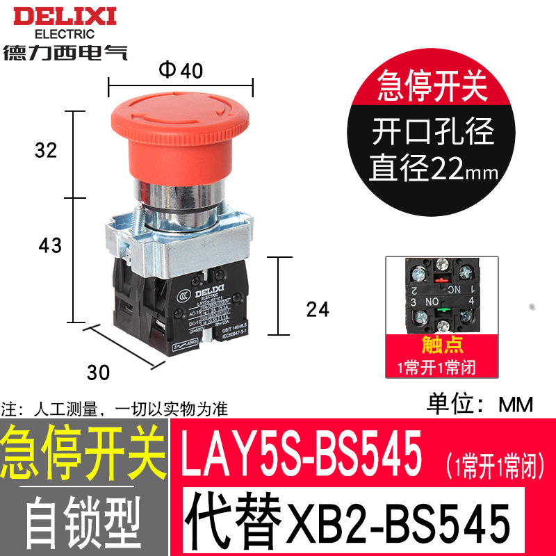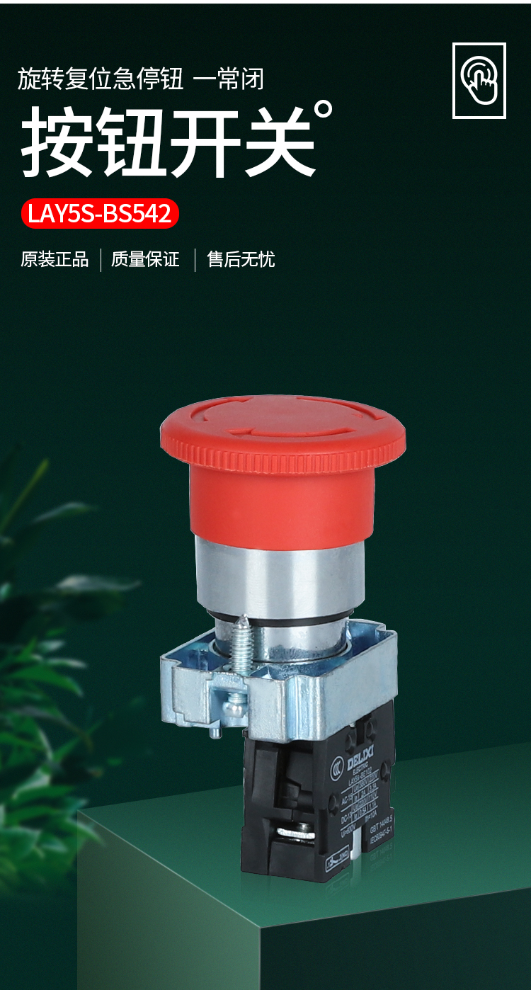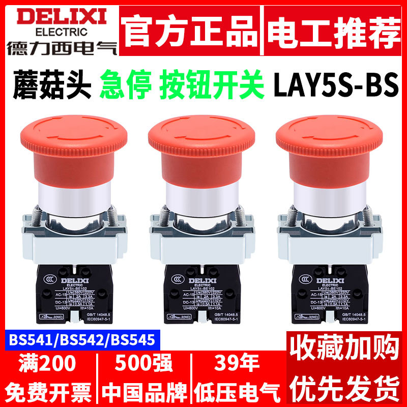 Кнопочный переключатель с грибовидной головкой Delisi BS545 Аварийная остановка LAY5-BS542 XB2 самоблокирующаяся 22 мм металлическая головка 541