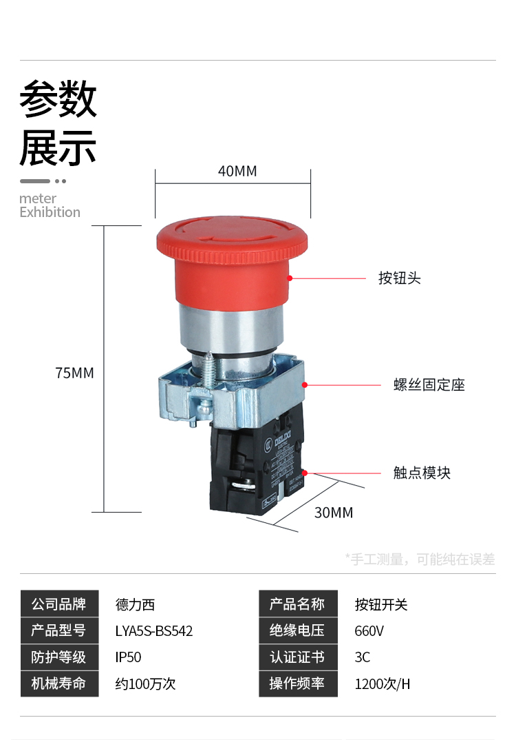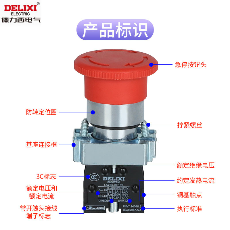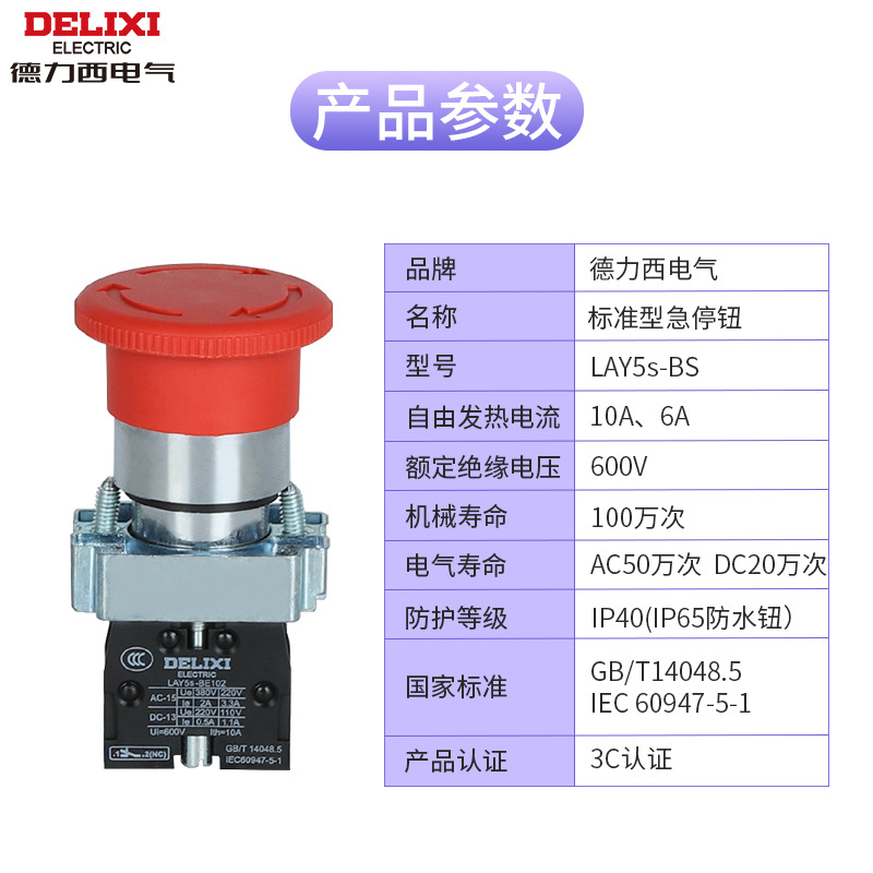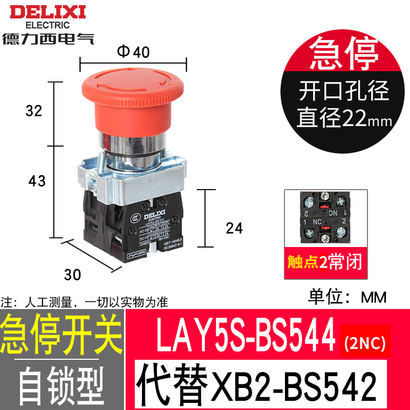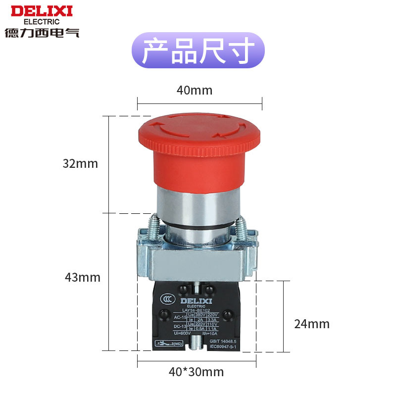 Кнопочный переключатель с грибовидной головкой Delisi BS545 Аварийная остановка LAY5-BS542 XB2 самоблокирующаяся 22 мм металлическая головка 541