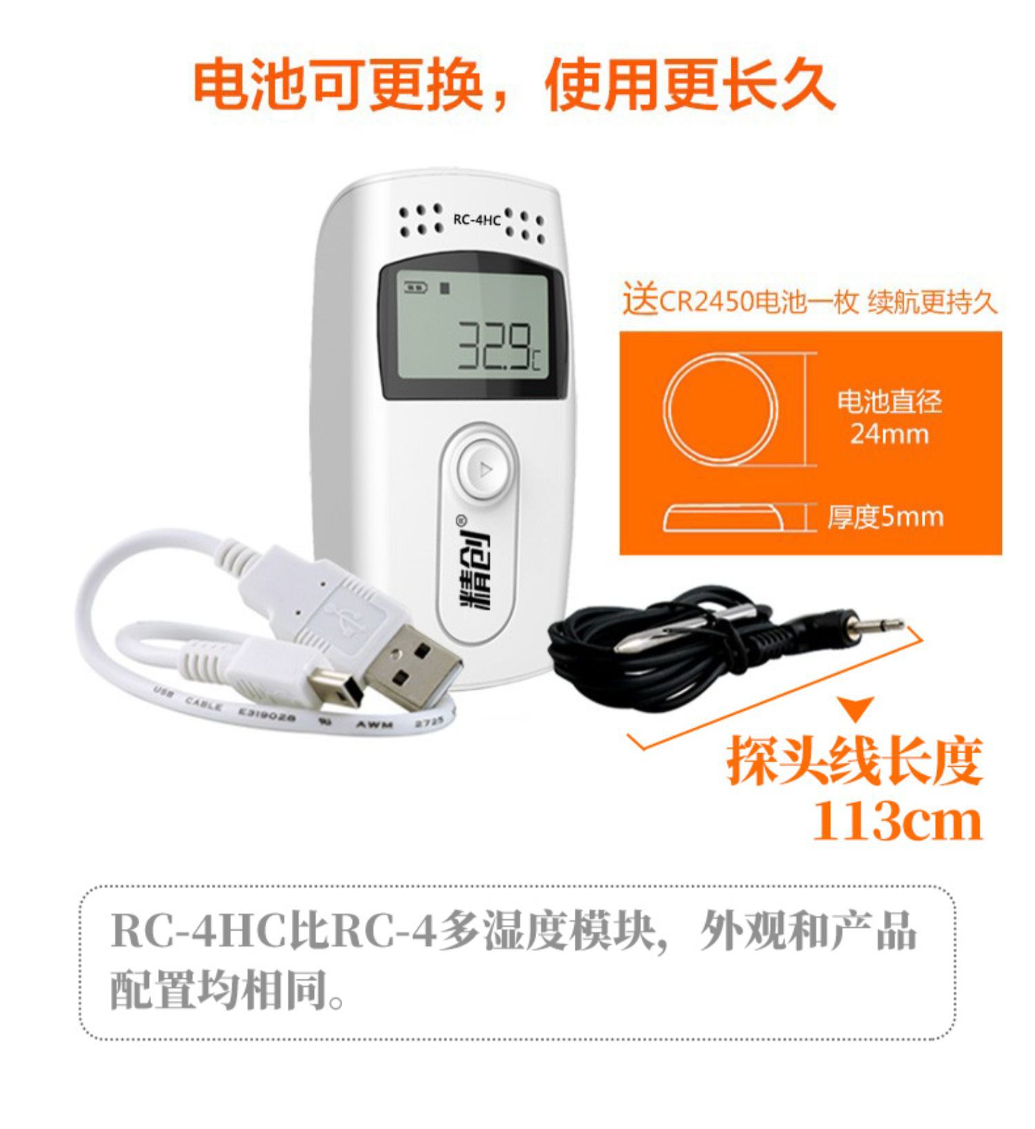 RC-4, одиночная температура + датчик + заводская калибровка; RC-4 (одна температура + калибровка CNAS); RC-4HC температура и влажность + датчик температуры + заводская калибровка; RC-4HC (температура и влажность) + калибровка CNAS; Модернизированная версия RC-4Pro, одиночная температура + линия зонда; RC-4H Pro обновленная версия температуры и влажности + линия зонда; RC-4 английская версия