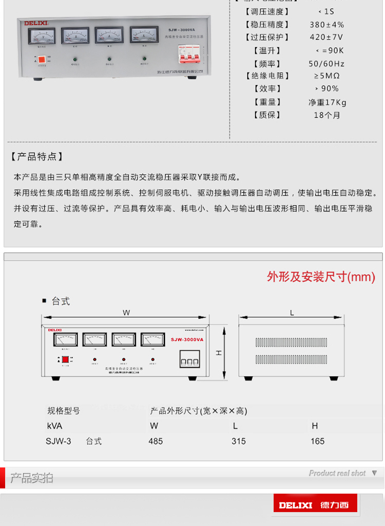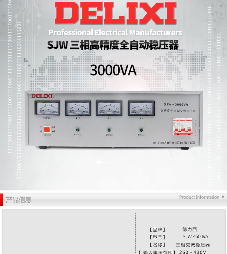 Delixi автоматический Высокоточный стабилизатор переменного напряжения SJW блок питания 4500 Вт промышленный 4,5 кВт 380 В трехфазный