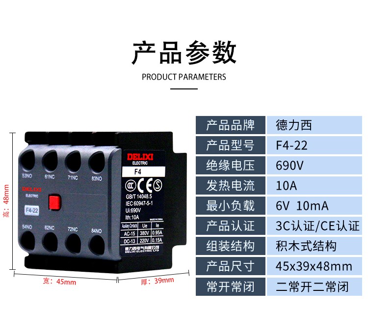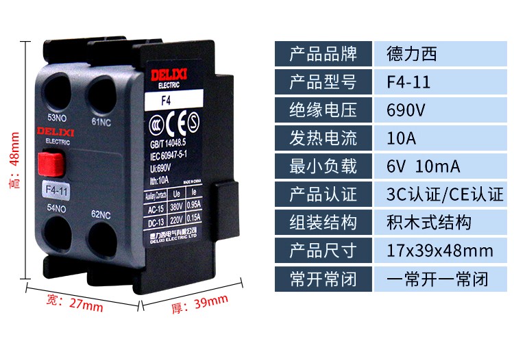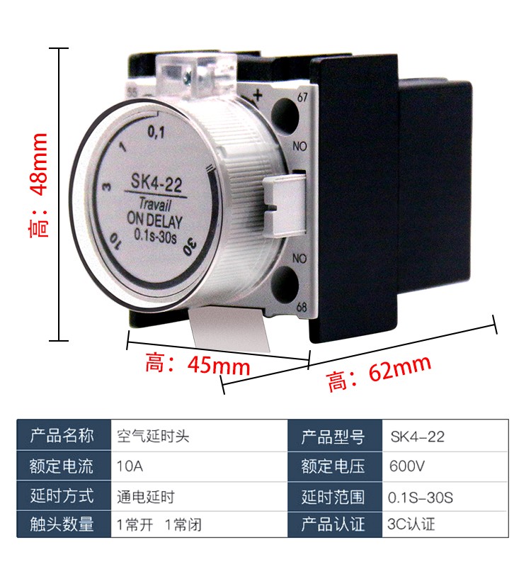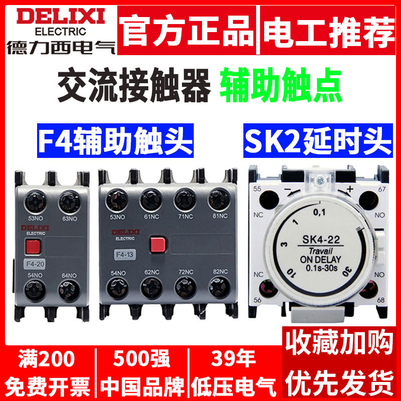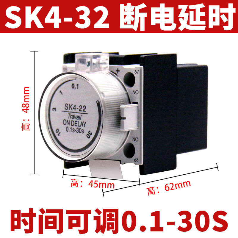 Вспомогательный контакт контактора переменного тока Delixi F4-11/22 Головка задержки включения и выключения питания 30 с SK4-22