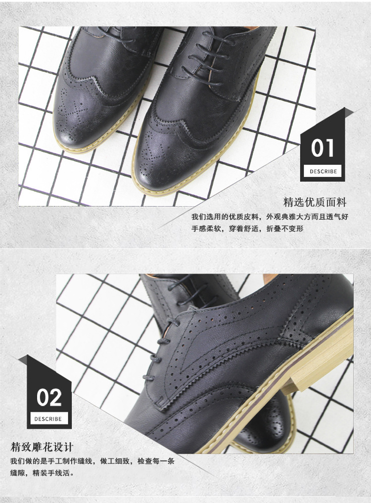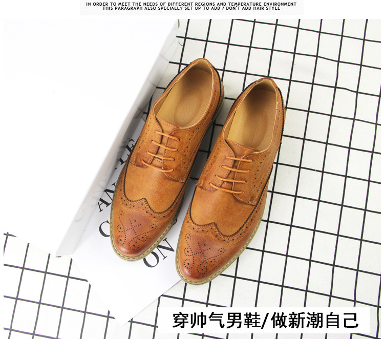 2023 Весенняя дышащая кожаная обувь, мужская броги, деловая официальная одежда, молодежная универсальная цельная доставка, модная мужская обувь
