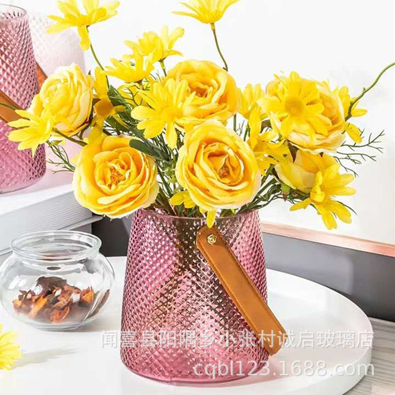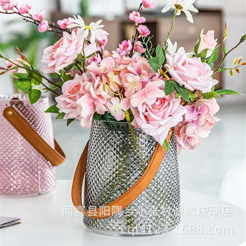 Новая китайская стильная Алмазная стеклянная прозрачная портативная ваза красочная кожаная креативная ваза обеденный стол Гостиная украшения дома