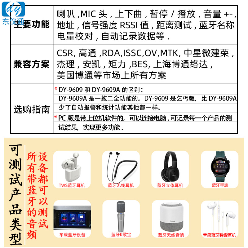 Тестер Bluetooth-наушников TWS DY9609 (один к четырем, один к шести), прибор для тестирования автомобильных динамиков