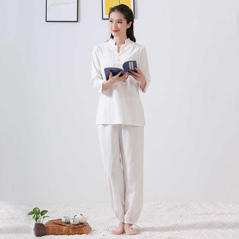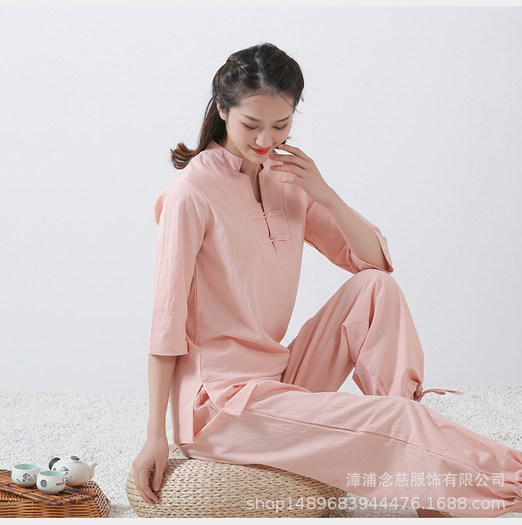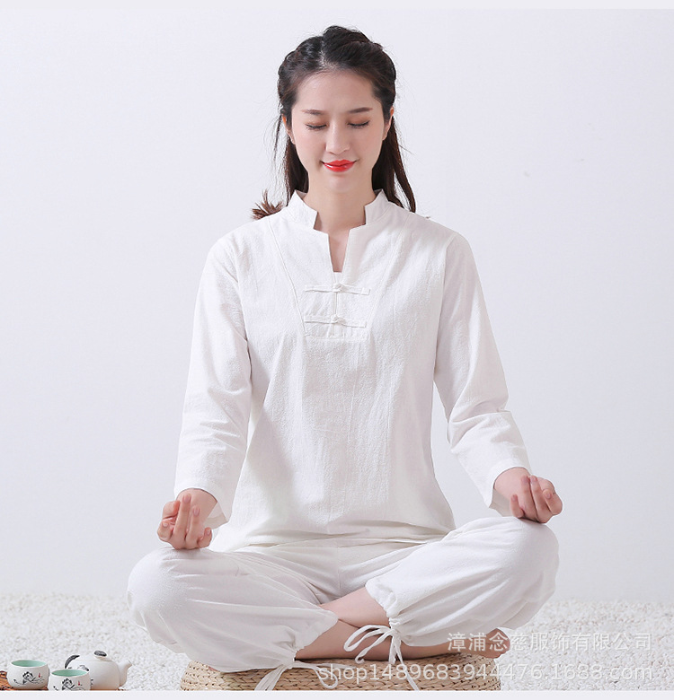 Хлопковый и льняной дзен-костюм для йоги унисекс костюм Тай-Чи для мужчин и женщин живые мужчины медитируют чайную церемонию в стиле ретро Улучшенный костюм ханьфу