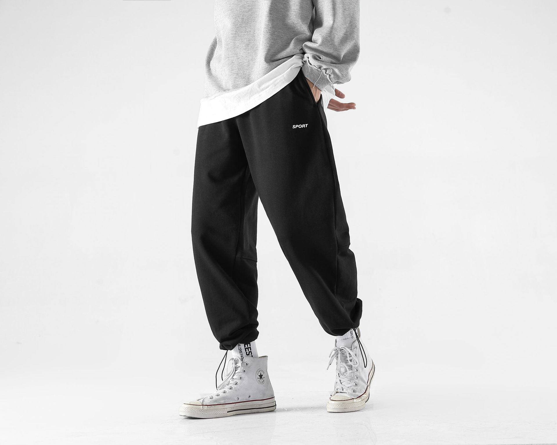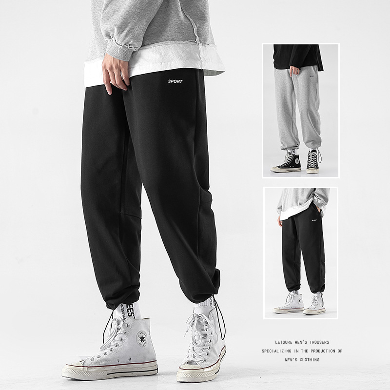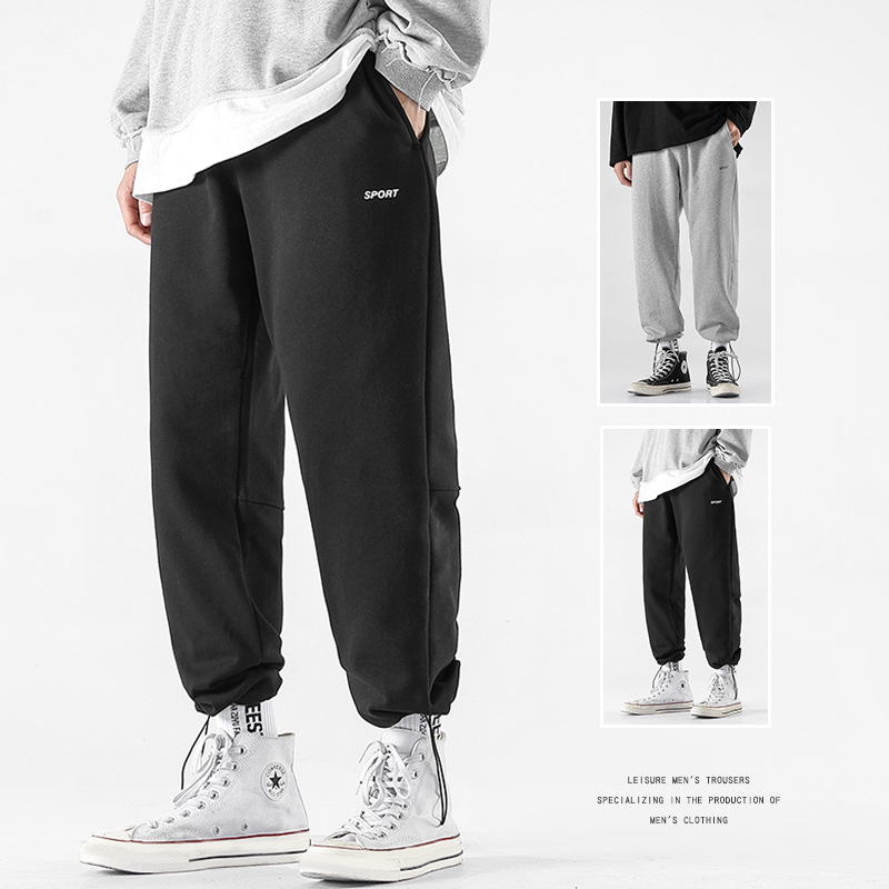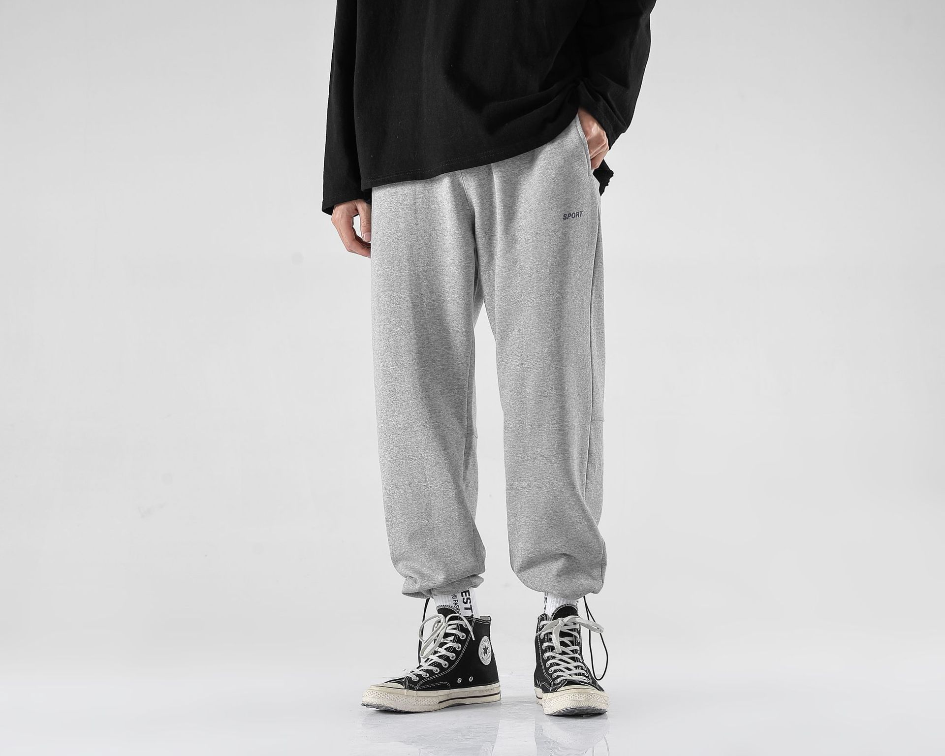 Брюки на шнурке Мужские серые спортивные брюки Свободные прямые вязаные брюки больших размеров Повседневные тонкие широкие брюки Баскетбол