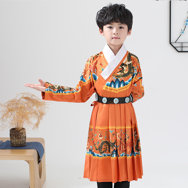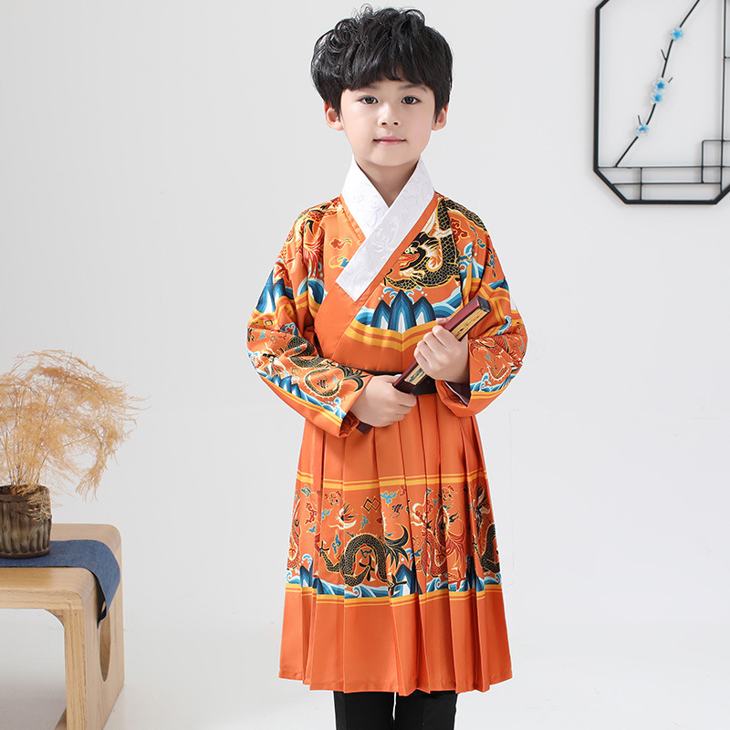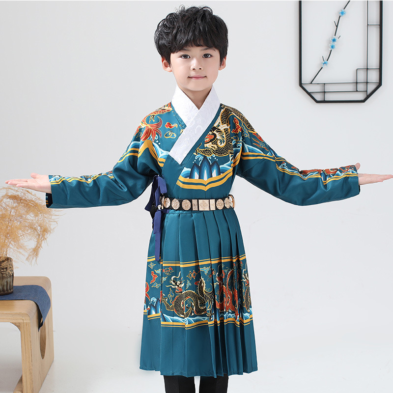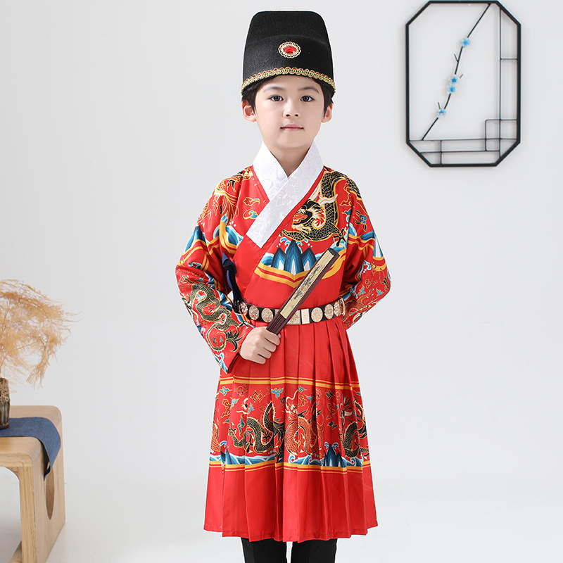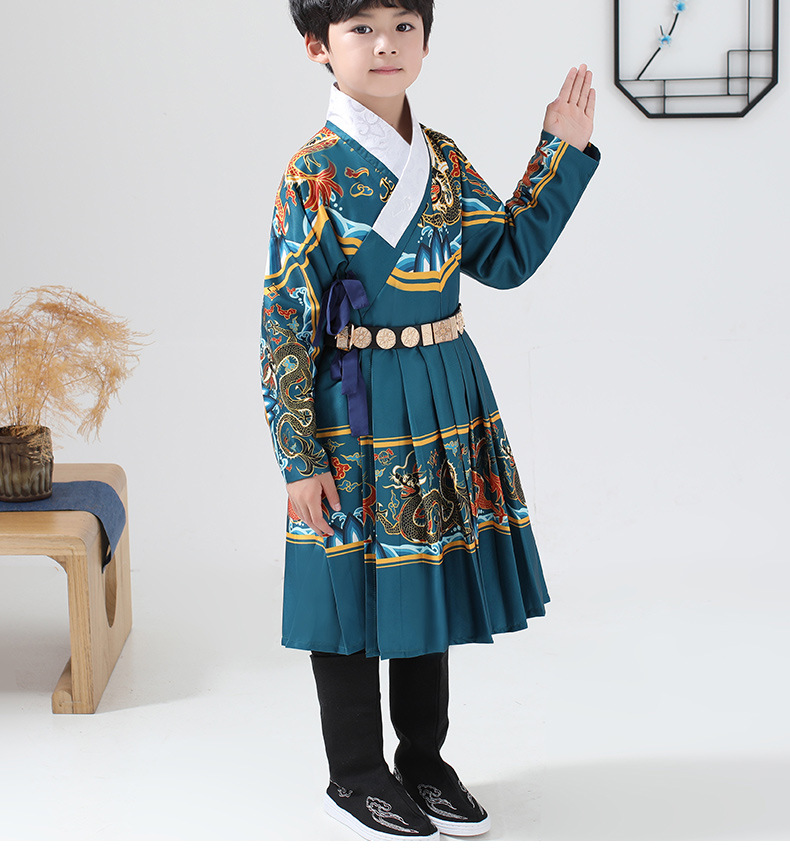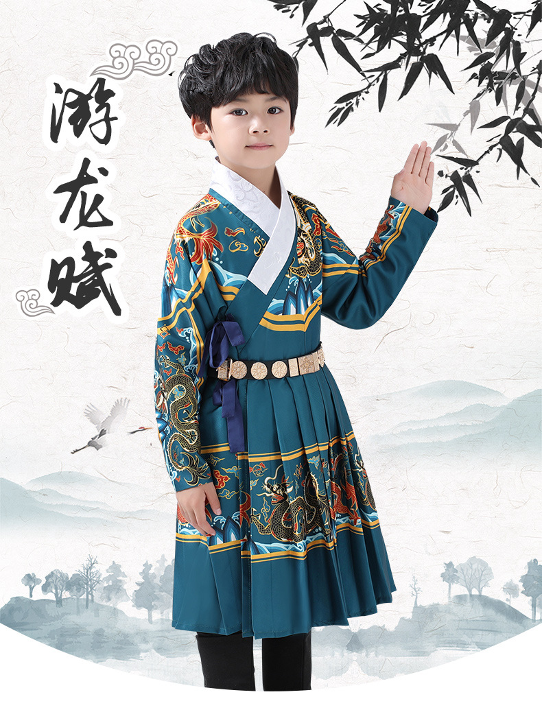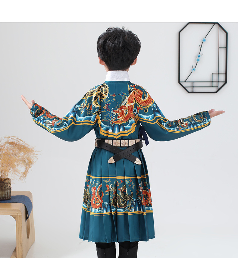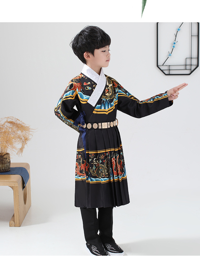 Новинка 2020 года, детская одежда в китайском стиле ханьфу в стиле Мин с летучей рыбой, халат питона, Мужская детская одежда, весна и осень, старинная одежда