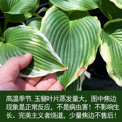 本基地的玉簪都是露天种植,淋雨晒太阳,到了夏天秋天,叶片或许都会有斑点,这个不影响存活。