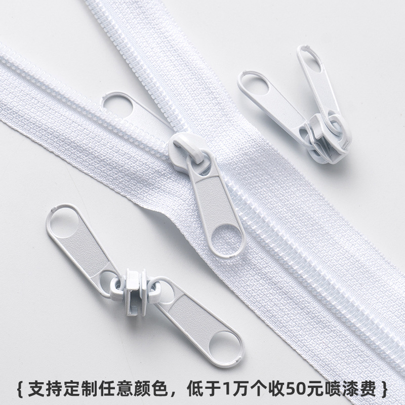 Оптовая продажа № 3 5 № 8 № 10 нейлоновая молния головка электрическая белая металлическая сумка для домашнего текстиля двойная длинная пластина