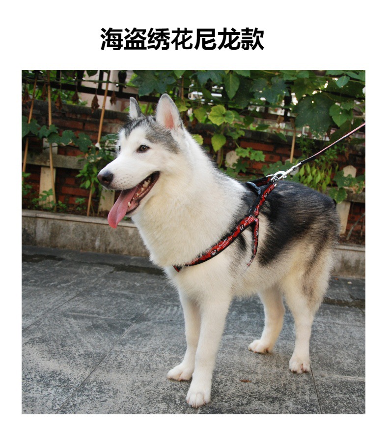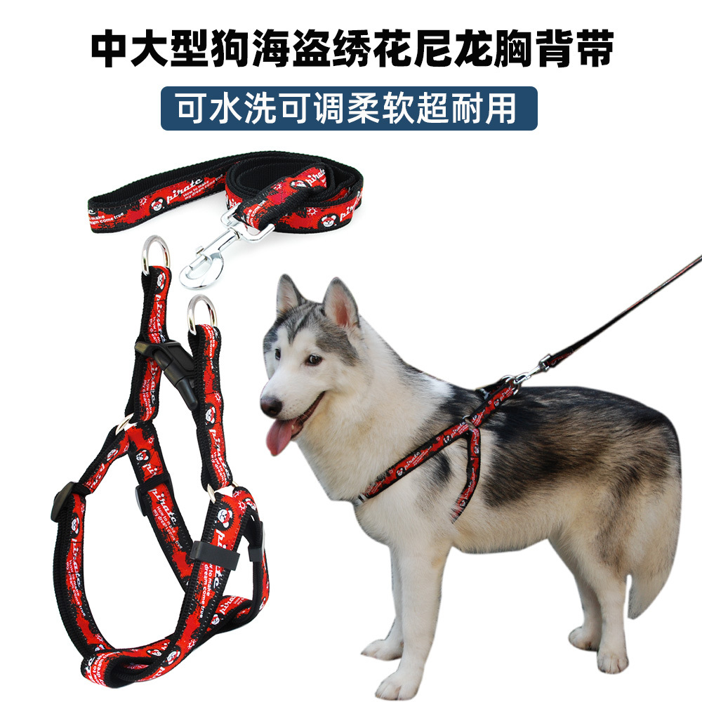 Ручной поводок для домашних животных Большая собака Нейлоновый нагрудный ремень Пиратская вышивка Кружевной поводок для собак Поводок для собак Товары для домашних животных