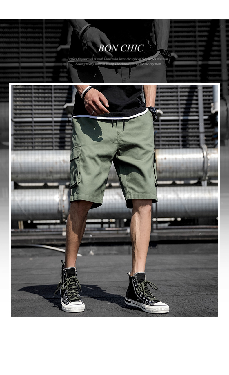 Армейские зеленые инструментальные шорты Мужские плюс размер Плюс толстый человек Толстый парень Свободные модные брюки ins5