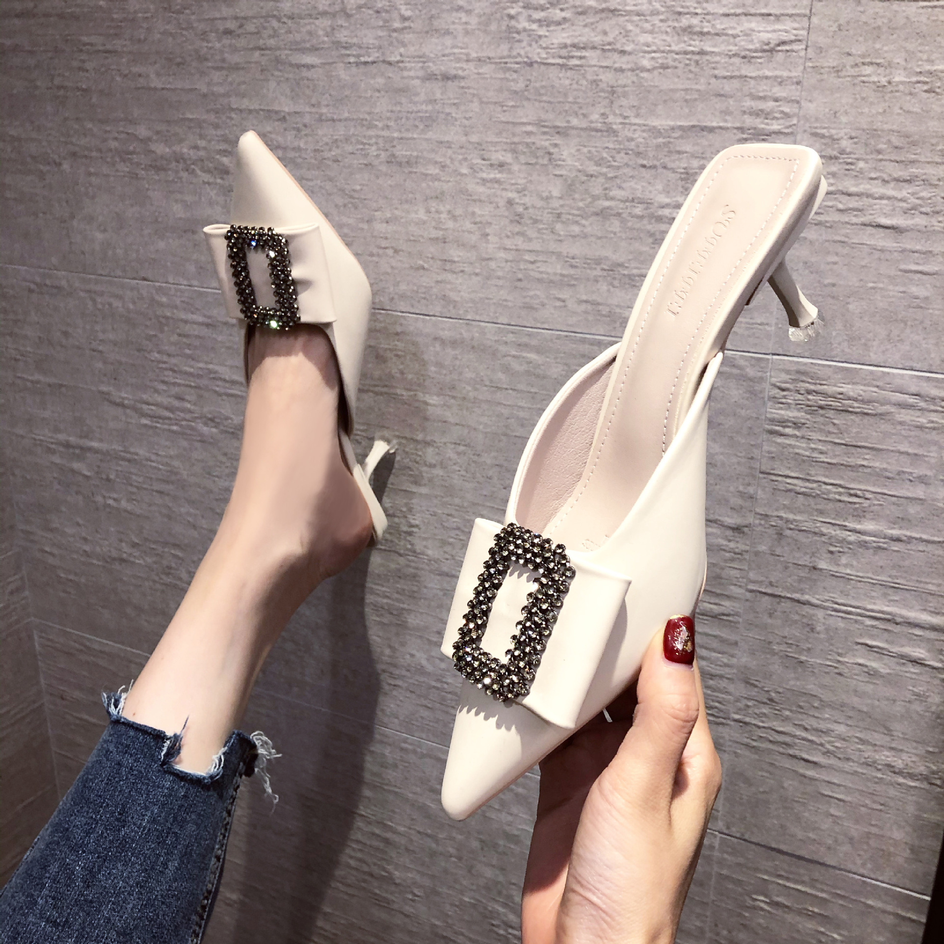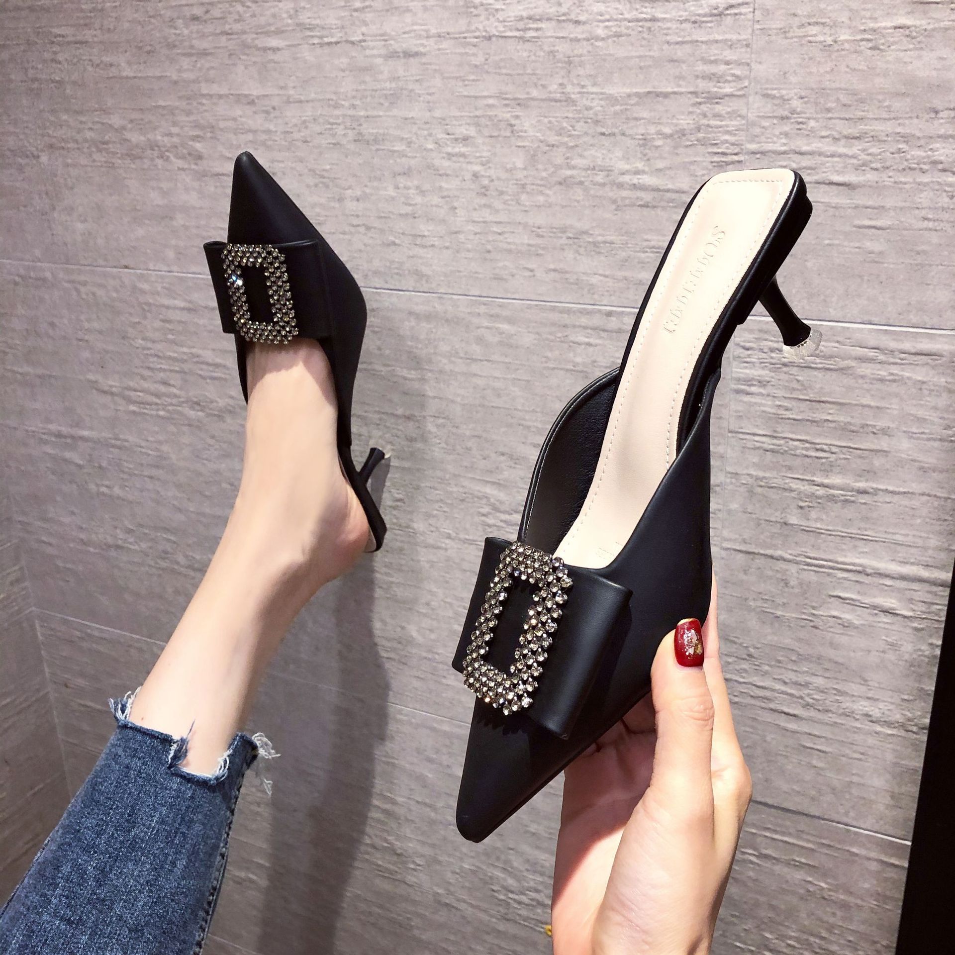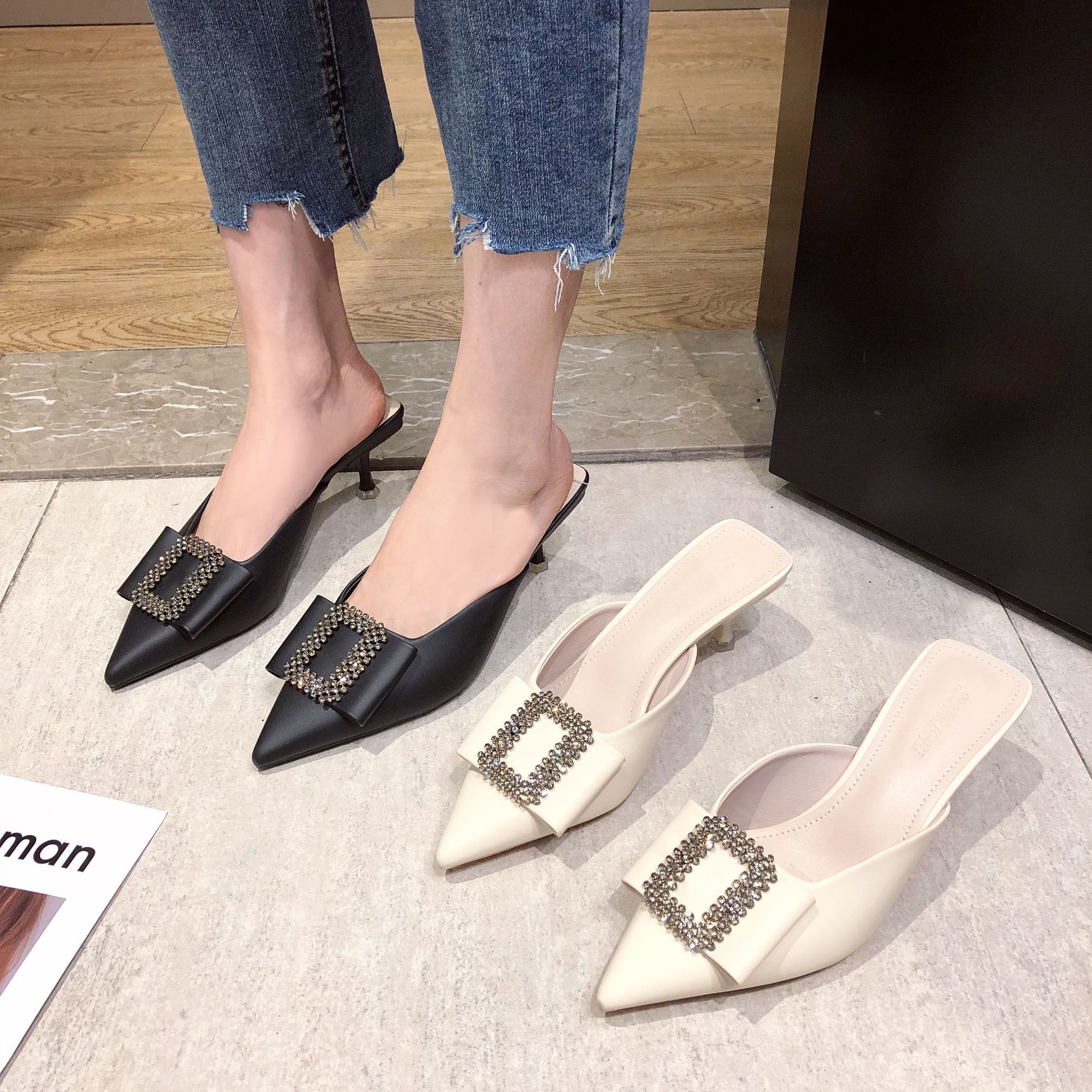 338-29 Женские сандалии и тапочки, женские повседневные босоножки на заостренном каблуке в стиле девушки, новинка 2020 года, босоножки на высоком каблуке