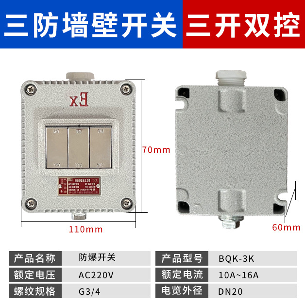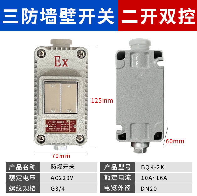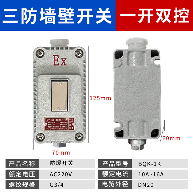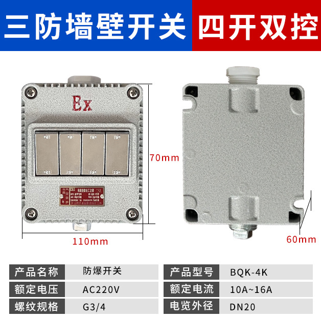 Взрывозащищенный выключатель, одинарный/двойной, промышленный, взрывозащищенная розетка, настенный выключатель 220В, одинарный/двойной, накладной, водонепроницаемый