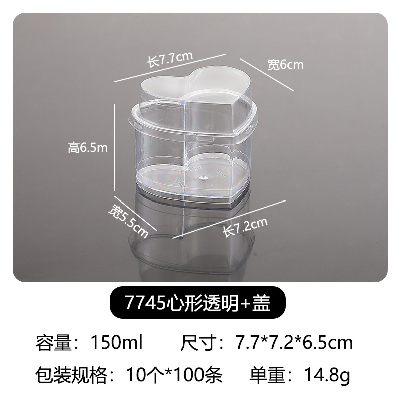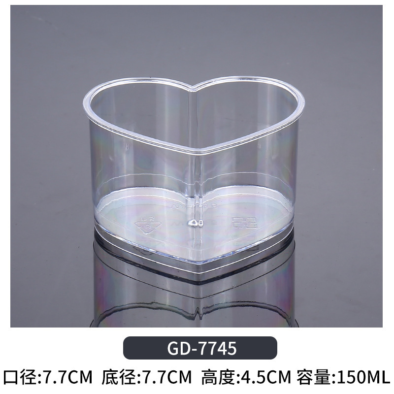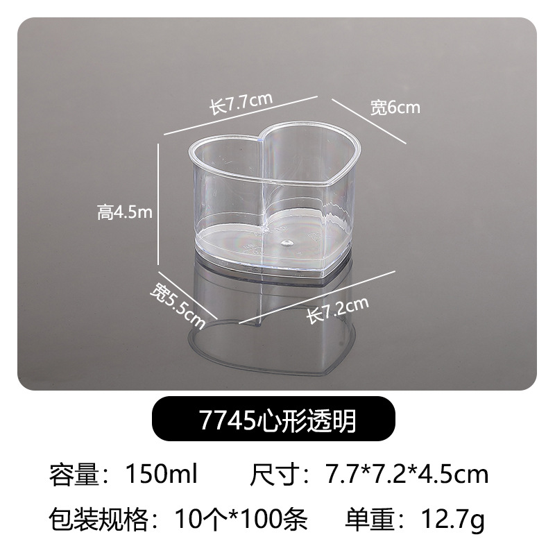 Прозрачный одноразовый стаканчик для десертов и муссов из пищевого пластика PS в форме сердца, 150 мл