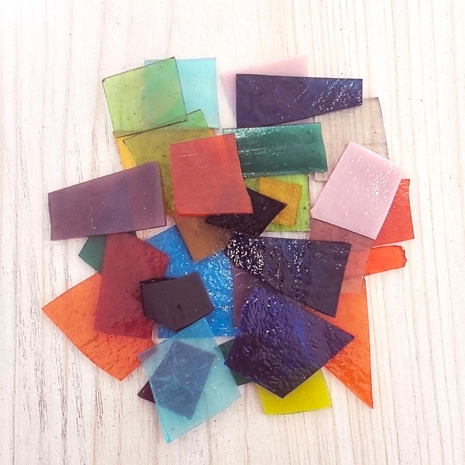 Мелкие украшения и изделия ручной работы из ярких кусочков стекла, полученных методом термоплавления.