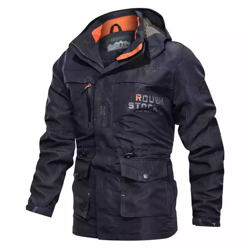 Осенне-зимний Синий Свободный Тонкий Повседневный накладной карман с капюшоном больших размеров, сшитый сбоку, модный бренд в наличии, ветровка средней длины на молнии