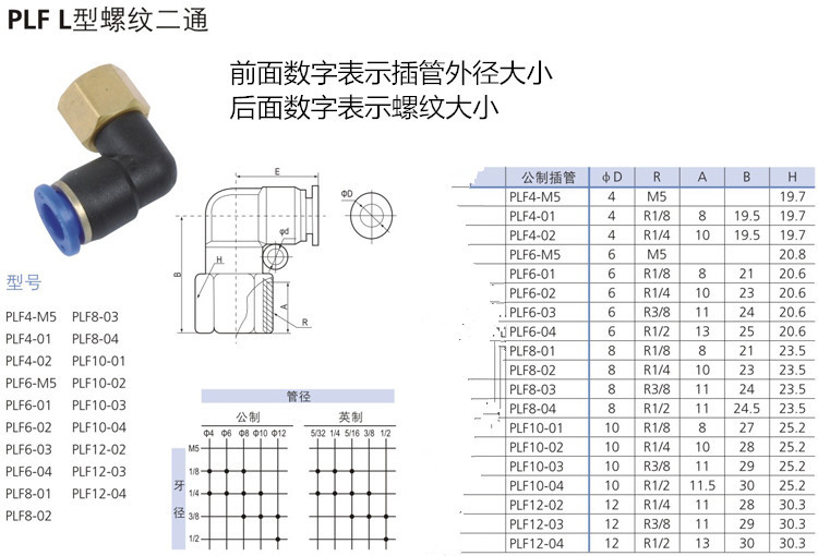 Заводская прямая прямоугольная пневматическая труба L-типа Быстрая вставка с внутренней резьбой PLF8-02/03 двусторонний коленчатый быстроразъемный соединитель
