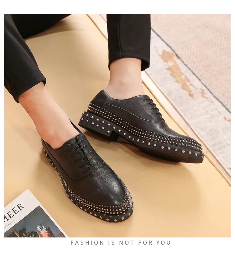 Мужская обувь с заклепками, туфли-оксфорды, джентльменские туфли из воловьей кожи первого слоя на шнуровке с низким берцем, мужские дерби, модные деловые деловые кожаные туфли для мужчин